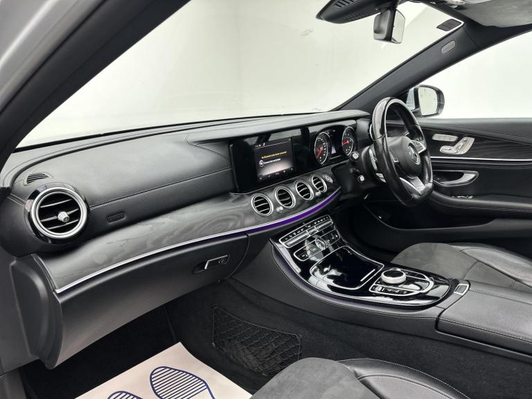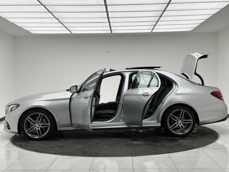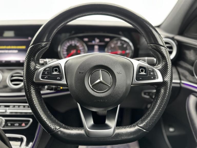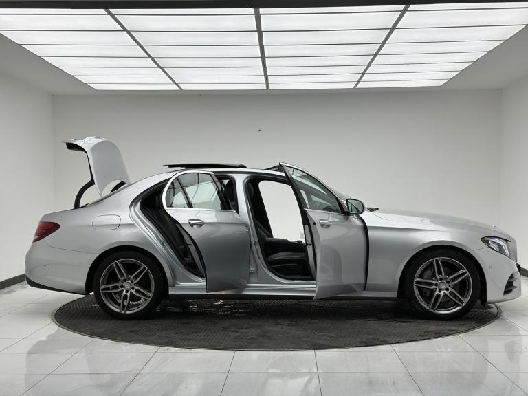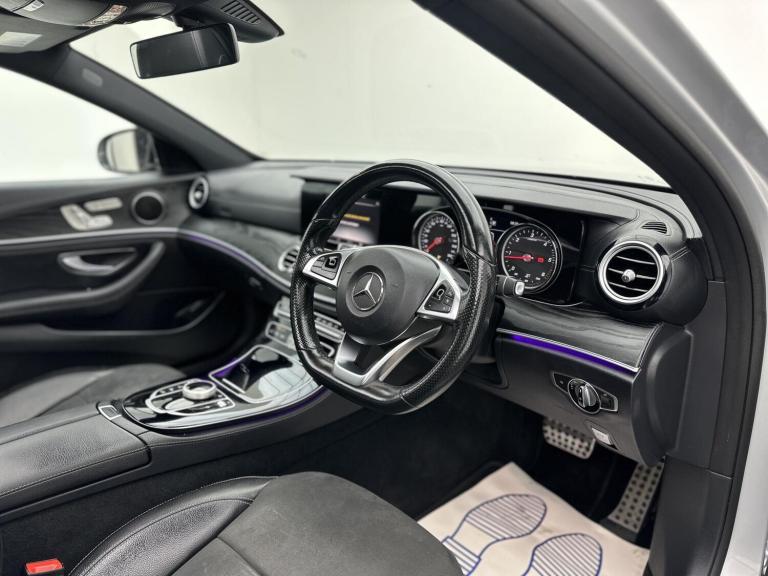 Mercedes-Benz E-Class E 220d AMG Line Premium 2016 – Specification & Features Model & Trim: Mercedes-Benz E-Class, E220d AMG Line Premium Year: 2016 Engine & Transmission: 2.0-litre diesel engine, 9G-Tronic 9-speed automatic gearbox Drivetrain: Rear-wheel drive Mileage: Low (well cared for) Service History: Full service history included Key Features & Equipment Panoramic tilt-and-slide sunroof Heated front seats Leather upholstery (AMG Line styling) AMG-style body kit and alloy wheels Reverse camera for easier parking Front and rear parking sensors Dual-zone automatic climate control COMAND infotainment system with high-resolution screen Bluetooth and USB connectivity Driver assistance features: cruise control, lane keeping assist, etc. Keyless-go / keyless entry LED daytime running lights Rain-sensing windshield wipers Electric folding mirrors Driving Experience Smooth and refined: The 9-speed 9G-Tronic automatic gearbox delivers seamless, effortless gear changes, which makes motorway cruising relaxing and efficient. Responsive diesel: The 2.0 litre E220d engine offers strong torque and low-end pull, giving confident acceleration and good fuel economy, particularly on longer journeys. Agile yet composed: Despite its executive size, the E-Class feels agile in corners, with well-weighted steering and stable high-speed behaviour. Comfort & Practicality Spacious and comfortable interior: Plenty of legroom and headroom in both front and rear seats, making it a great option for passengers. Luxurious seating: Heated and soft leather seats provide excellent comfort – especially in colder weather. Panoramic roof: The tilt-and-slide sunroof enhances the feeling of space and brings in natural light for all occupants. Generous boot size: Ample luggage space, suitable for family trips or business use. Safety & Security Advanced safety features: Includes multiple airbags, ESP (Electronic Stability Program) and ABS brakes. Parking help: Reverse camera plus front and rear sensors make manoeuvring much easier and safer. Driver assistance: Features like lane keeping assist and possibly blind spot monitoring help in reducing risk on busy roads. Solid build quality: Mercedes-Benz reputation for safety and durability gives added peace of mind. Overall SummaryA well-specified, luxurious and practical executive saloon, this 2016 Mercedes-Benz E220d AMG Line Premi...