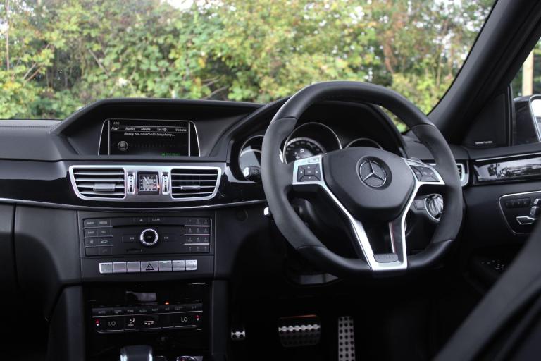 OVER 200 VEHICLES IN GROUP STOCK. Finished in Obsidian Black metallic with full black AMG Nappa leather interior. Features include sliding panoramic glass sunroof with powered sunblind, Harman Kardon surround sound system, Comand satellite navigation, panamericana front grille, 19 AMG ten spoke design alloy wheels finished in black, front and rear park distance control with rear view camera, heated AMG sport seats with memory package, digital three zone climate control with automatic air conditioning, bluetooth connectivity with media streaming, DAB digital radio, LED intelligent light system with adaptive high beam, rain sensor, cruise control, AMG ride control sports suspension with rear air suspension, AMG sports exhaust system, AMG high performance braking system with red calipers, brake assist, electric folding exterior mirrors, privacy glass, keyless go, AMG specific IWC analogue clock, black ash wood trim, voice control, AMG leather and dinamica steering wheel with paddleshift, automatic transmission plus much more standard specification. This E63 AMG is offered in excellent condition having covered 81700 miles from new. Car comes complete with a comprehensive service history consisting of the following - 08/05/2017 at 9673 miles, 25/05/2018 at 18611 miles, 04/06/2019 at 23620 miles, 22/05/2020 at 30111 miles, 21/05/2021 at 40800 miles, 22/04/2022 at 53200 miles, 31/05/2023 at 64194 miles and 14/09/2025 at 81450 miles. GOOGLE YORKSHIRE VEHICLE SOLUTIONS FOR OUR CUSTOMER REVIEWS. PLEASE CALL OR E-MAIL FOR FURTHER DETAILS OR TO ARRANGE A PERSONALISED VIDEO OR VIEWING.