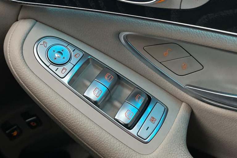 8.4 high resolution display, Active park assist with parktronic system, Attention assist, Bluetooth interface for hands free telephone, Collision prevention assist plus, COMAND online nav with colour display, radio/CD/DVD/MP3, SD card, 10GB music, Emergency Call system, speed limit assist, linguatronic voice control, Crosswind Assist, DYNAMIC SELECT with a choice of driving modes (ECO, Comfort, Sport, Sport+ and Individual), Instrument cluster with 5.5-inch TFT multi-function display, Mercedes connect me with remote online services, Multi function trip computer, Outside temperature gauge, Power opening/closing tailgate, Remote boot release, Service indicator (ASSYST), Touch pad controller for infotainment system, Traffic sign recognition, Adaptive brake lights, Aerodynamic rear spoiler, Aluminium roof rails, Automatic headlights, Body colour door mirrors, Body coloured bumpers, Chrome exterior trim, Electric panoramic sunroof with sunblind, Electric windows one touch open/close, Electrically adjustable and heated door mirrors, Exhaust tailpipe finisher, LED daytime running lights, LED rear lamps, Privacy glass (to rear of B post), Radiator grille with integrated star and 2 chrome trimmed louvres, Rain sensor windscreen wipers, Range adjustable headlights, Rear wiper, Tinted glass all round, 2 cupholders in front centre console, 2 way rear head restraints, 3 spoke leather steering wheel, 4 way adjustable front head restraints, 4 way electric lumbar support for driver