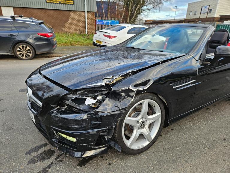 Front corner and side damage. CAT S Salvage. Starts & Drives. Airbags OK. Roof works fine. DIESEL. MOT Til September 2026. Neck Scarf fitted. AMG SPort Model. Low mileage.