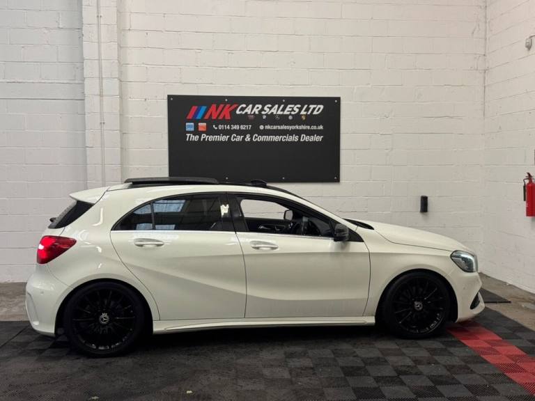 WE ARE DELIGHTED TO OFFER THIS LOVELY MERCEDES BENZ A-CLASS CAR LISTED WITH EXTRAS SUCH AS LEATHERHEATED SEATS, PAN ROOF, SAT NAV, REVERSE CAMERA, FRONT & REAR PARKING SENSORS PLUS MUCH MORE. IT ALSO COMES WITH MERCEDES BENZ SERVICE HISTORY, 2 KEYS & A GREAT MOT TRACK HISTORY. THIS VEHICLE WILL BE SERVICED AND SUPPLIED WITH A NEW MOT (IF LESS THAN 6 MONTHS). 2017 (17) MERCEDES-BENZ A-CLASS 2.1 A220d AMG Line (Premium Plus) Hatchback 5dris offered to you for sale in Sheffield, South Yorkshire, finished in white, this used MERCEDES-BENZ A-CLASS 2.1 A220d AMG Line 5dris one of many handpicked used cars that used car dealer, NK Car Sales, Sheffield, South Yorkshire have available for sale. We are a family-owned company that prides itself on the quality of vehicles and all of them are carefully chosen, handpicked examples that are always HPI Clear for your peace of mind. We have an indoor showroom where you can view any potential purchase in total comfort and away from the elements. We offer all the usual used Car Dealer facilities such as Low-rate finance and extended warranties and operate a no-pressure environment where you can relax and enjoy good old-fashioned service with a smile. Here at NK Car Sales Ltd we are an FCA approved dealer who have relationships with all the major lenders and high street banks. This means that we can help find you finance whatever your credit history. Please call or apply online to see if we can help. All vehicles are checked via Experian for your piece of mind. .18in Alloy Wheels - AMG 5-Twin-Spoke Design - Painted in Titanium Grey with a High Sheen Finish, 18in Alloy Wheels - AMG Multi-Spoke Design, ABS - Anti-Lock Braking System with BAS - Brake Assist, Active Bonnet - Pedestrian Safety Measure which Detects an Impact and Raises Bonnet by 65mm, Active Braking Assist, Adaptive Brake Assist with Hold Function and Hill Start Assist, Adaptive Brake Lights, Air Vents with Surround and Cruciform Nozzle in Silver Chrome, Airbags - Dual Stage - Driver and Front Passenger, Airbags - Head and Sidebags - Driver and Front Passenger, Airbags - Windowbags for Driver and Front Passenger, Alarm System with Immobiliser and Interior Protection - Thatcham Category 1, Ambient Lighting in Headrests and Interior Door Handles, AMG Bodystyling - Front and Rear Apron and Side Skirts, AMG Exclusive Package, ATTENTION Assist, Audio 20 Radio-CD-MP3 Compatibility, Automatic Child Seat Recognition Sensor, Beltline Strips - Chrome, Bodystyling - Side Skirts - Body-Coloured, Brake Calipers - Mercedes-Benz Lettering on Front, Brake-Pad Wear Warning Indicator, Brushed Stainless Steel Sports Pedals with Rubber Studs, Bumpers - Body Coloured, Centre Armrest - Front with Stowage, Childproof Locks - Manually Operated for Rear Doors and Electrically Operated for Rear Power Windows, Controller on Centre Console with Chrome Surround, Crash-Responsive Emergency Lighting, Cruise Control with Limiter, Cup Holder - Double - Front, Direct Select Shift Lever with Steering Wheel Shift Paddles, Direction Indicators with Lane-Changer Function, Door Handles - Body Coloured, Door Mirrors - Electrically Adjustable and Heated with Integrated LED Indicators, Door Mirrors - Mirror Housing in Body-colour, Drivers Kneebag, Dynamic Select with a Choice of Driving Modes - ECO-Comfort-Sport and Individual, Electric Parking Brake, Electric Windows - 4, Electronic Key - Chrome Surround, ESP - Electronic Stability Programme with ASR - Acceleration Skid Control, ESP Cornering Dynamics Assist, Exhaust System - Twin Trapezoidal Tailpipes in Polished Stainless Steel, First Aid Kit and Warning Triangle, Floor Mats - Red Stitched Edging - AMG Lettering, Fluid Level Warning Indicator for Fuel - Oil - Coolant and Washer Fluid, Footwell Lighting - Front and Rear, Glass - Rear Windscreen - Heated with Timer Control, Glove Compartment - Illuminated, Headlamp Assist - Automatic Headlamp Activation, High Level Third Brake Light - LED, Illuminated Front Door Sills with Mercedes-Benz Lette