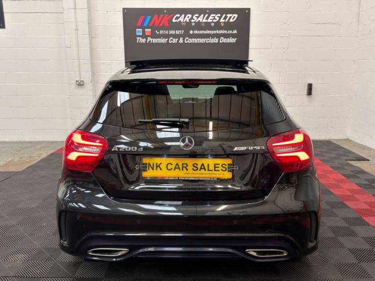 2017 MERCEDES-BENZ A CLASS 2.1 A200d AMG Line (Premium Plus) Hatchback 5dr is offered to you for sale in Sheffield, South Yorkshire, finished in black this MERCEDES-BENZ A CLASS 2.1 A200d AMG Line (Premium Plus) Hatchback 5dr is one of many handpicked used cars that used car dealer, NK Car Sales, Sheffield, South Yorkshire have available for sale. We are a family-owned company that prides itself on the quality of vehicles and all of them are carefully chosen, handpicked examples that are always HPI Clear for your peace of mind. We have an indoor showroom where you can view any potential purchase in total comfort and away from the elements. We offer all the usual used Car Dealer facilities such as Low-rate finance and extended warranties and operate a no-pressure environment where you can relax and enjoy good old-fashioned service with a smile. .18in Alloy Wheels - AMG 5-Twin-Spoke Design - Painted in Titanium Grey with a High Sheen Finish, ABS - Anti-Lock Braking System with BAS - Brake Assist, Active Bonnet - Pedestrian Safety Measure which Detects an Impact and Raises Bonnet by 65mm, Active Braking Assist, Adaptive Brake Assist with Hold Function and Hill Start Assist, Adaptive Brake Lights, Air Vents with Surround and Cruciform Nozzle in Silver Chrome, Airbags - Dual Stage - Driver and Front Passenger, Airbags - Head and Sidebags - Driver and Front Passenger, Airbags - Windowbags for Driver and Front Passenger, Alarm System with Immobiliser and Interior Protection - Thatcham Category 1, Ambient Lighting in Headrests and Interior Door Handles, AMG Bodystyling - Front and Rear Apron and Side Skirts, ATTENTION Assist, Audio 20 Radio-CD-MP3 Compatibility, Automatic Child Seat Recognition Sensor, Beltline Strips - Chrome, Bodystyling - Side Skirts - Body-Coloured, Brake Calipers - Mercedes-Benz Lettering on Front, Brake-Pad Wear Warning Indicator, Brushed Stainless Steel Sports Pedals with Rubber Studs, Bumpers - Body Coloured, Centre Armrest - Front with Stowage, Childproof Locks - Manually Operated for Rear Doors and Electrically Operated for Rear Power Windows, Controller on Centre Console with Chrome Surround, Crash-Responsive Emergency Lighting, Cruise Control with Limiter, Cup Holder - Double - Front, Direct Select Shift Lever with Steering Wheel Shift Paddles, Direction Indicators with Lane-Changer Function, Door Handles - Body Coloured, Door Mirrors - Electrically Adjustable and Heated with Integrated LED Indicators, Door Mirrors - Mirror Housing in Body-colour, Drivers Kneebag, Dynamic Select with a Choice of Driving Modes - ECO-Comfort-Sport and Individual, Electric Parking Brake, Electric Windows - 4, Electronic Key - Chrome Surround, ESP - Electronic Stability Programme with ASR - Acceleration Skid Control, ESP Cornering Dynamics Assist, Exhaust System - Twin Trapezoidal Tailpipes in Polished Stainless Steel, First Aid Kit and Warning Triangle, Floor Mats - Red Stitched Edging - AMG Lettering, Fluid Level Warning Indicator for Fuel - Oil - Coolant and Washer Fluid, Footwell Lighting - Front and Rear, Glass - Rear Windscreen - Heated with Timer Control, Glove Compartment - Illuminated, Headlamp Assist - Automatic Headlamp Activation, High Level Third Brake Light - LED, Illuminated Front Door Sills with Mercedes-Benz Lettering, Illumination - Storage Compartment, Instrument Cluster with F