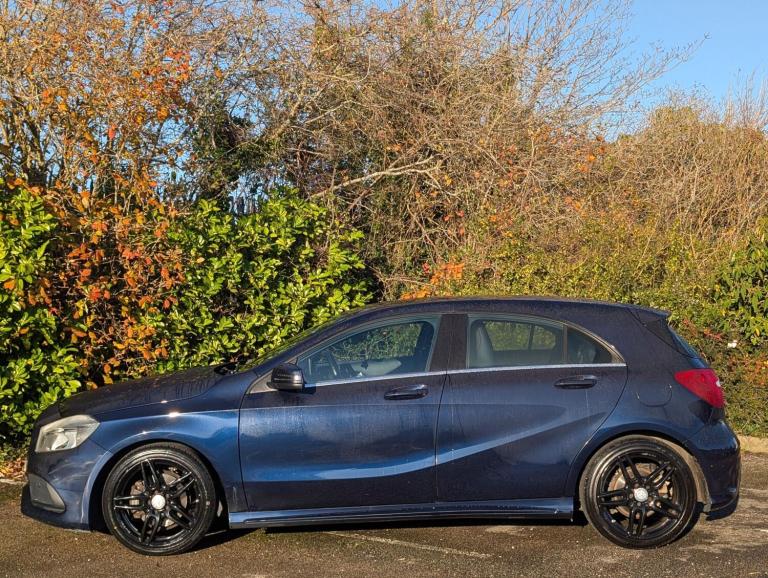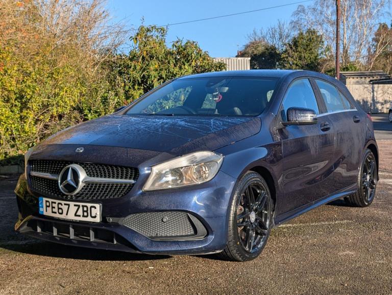 3 Striking Style & Efficiency: 2017 (67) Mercedes-Benz A180d AMG Line Command attention in this superb 2017 (67) Mercedes-Benz A180d AMG Line 5-door Hatchback, finished in a stunning Deep Blue paintwork that perfectly complements its sporty AMG styling. This executive compact car offers a fantastic blend of premium quality, impressive efficiency, and head-turning looks. ? Vehicle Highlights Low Mileage: Only 86,817 miles covered from new. Impeccable History: Complete with a Full Service History for total peace of mind. Exceptional Condition: Clearly well-maintained by only two former keepers. Long MOT: MOT valid until 3rd January 2027 with no advisories. ? Performance & Running Costs The A180d model is known for its incredible fuel efficiency without sacrificing Mercedes-Benz refinement. Engine1.5-litre 4-cylinder Turbo DieselRenault-sourced engine (OM608), widely praised for efficiency. Power (BHP)107 BHP (80 kW)Easily capable for motorway cruising and daily driving. Torque (Nm)260 Nm @ 1,750-2,500 rpmExcellent low-end pull. 0-62 mphApprox. 11.3 seconds Fuel Economy (Combined)Up to 74.3 MPG (Official NEDC)Real-world average typically in the high-50s to low-60s MPG. CO2 Emissions107 g/km (Euro 6 Compliant)ULEZ Compliant - ideal for city driving. Road Tax (VED)Low Band Excellent long-term running costs. ? AMG Line Specification (Key Features) The highly desirable AMG Line trim elevates the A-Class with aggressive styling and a superior cabin experience: Exterior Style AMG Bodystyling: Distinctive front and rear aprons and side skirts give a much sportier, low-slung stance. Diamond Radiator Grille: Features chrome pins and a silver louvre with a chrome insert--a true Mercedes signature. 18"" AMG 5-Twin-Spoke Alloy Wheels (Painted in Titanium Grey with a High Sheen Finish). LED Headlights & Tail Lights: Providing excellent illumination and the modern Mercedes light signature. Twin Trapezoidal Tailpipes: Finished in polished stainless steel for a performance look. Interior & Technology Sports Seating: Features ARTICO Man-Made Leather/DINAMICA Microfibre upholstery with contrasting red stitching. AMG Floor Mats: With distinctive red stitched edging and AMG lettering. 3-Spoke Sports Multi-Function Steering Wheel: Covered in leather, flat-bottomed, and perforated in the grip area. DAB Digital Radio and Media Interface with USB ports. 8-inch Colour Media Display Screen (standard for this model year W176 facelift). ATTENTION ASSIST and Collision Prevention Assist Plus (safety features). Dynamic Select: Allows the driver to choose between driving modes (e.g., ECO, Comfort, Sport, Individual) to tailor the driving experience. THERMOTRONIC Luxury Automatic Climate Control (Dual-Zone on many examples - check this vehicle's specification). This Mercedes A-Class delivers an impressive combination of premium German engineering, class-leading fuel economy, and the dynamic styling of the AMG Line. It's a fantastic opportunity to own a prestige hatchback with an unblemished history and a very long MOT. Ready to be driven away today! Contact us now to secure this exceptional Mercedes-Benz A180d.