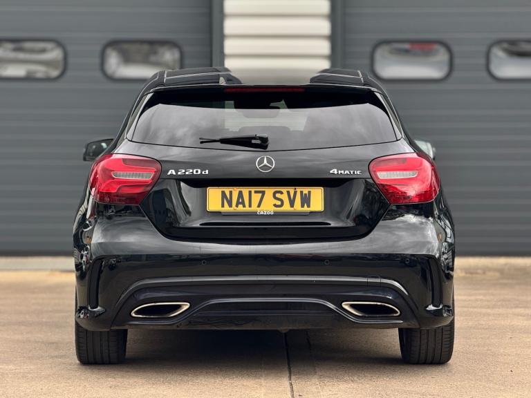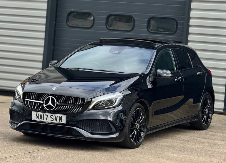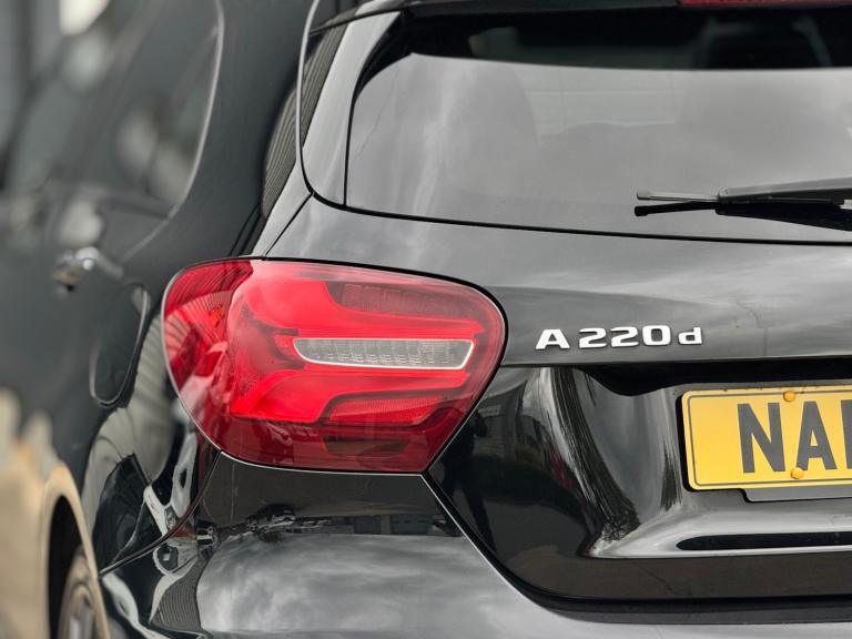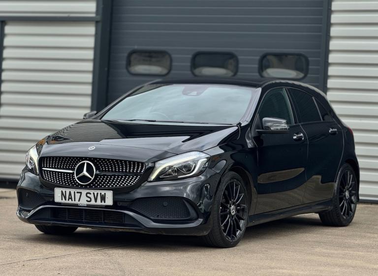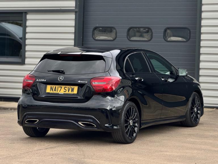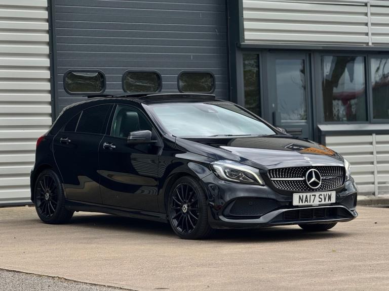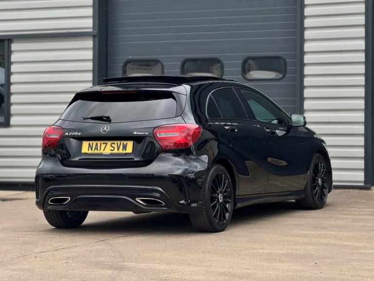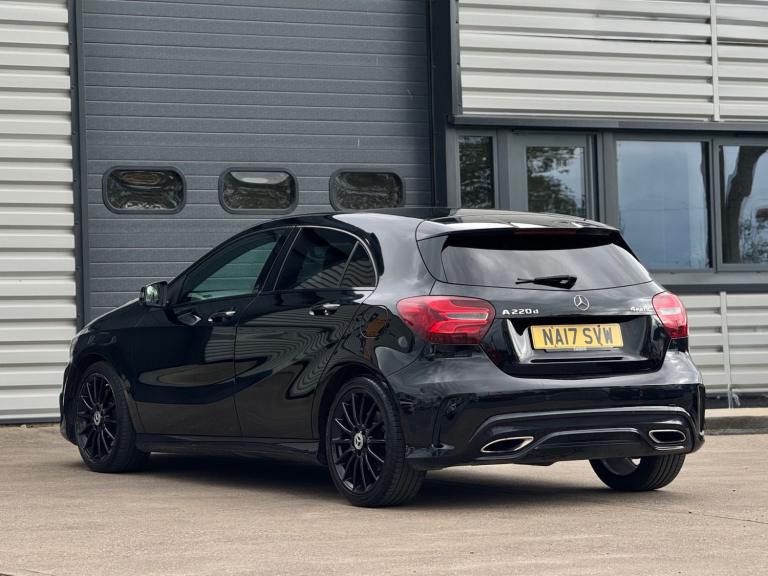 MERCEDES-BENZ A220 D AMG LINE PREMIUM PLUS DCT 2017 - FULL BLACK PACKAGE. A high specification and well maintained example of the A220d AMG Line Premium Plus, finished in a sleek full black package with only 49,800 miles. This model comes with the sought-after Premium Plus package, featuring a large upgraded navigation display, panoramic glass roof, electric front seats (driver and passenger) and premium sports interior stitching. Additional features include front and rear parking sensors and smooth automatic DCT gearbox. The car has just had a major service and comes with a fresh advisory free MOT, 2 keys and is fully ULEZ compliant. Additional services include alloy wheel refurbishment, premium valet and a platinum level warranty. We offer nationwide delivery. Viewings are by appointment only. Gold Standard Warranty included. A clean, high specification vehicle ready to drive away.