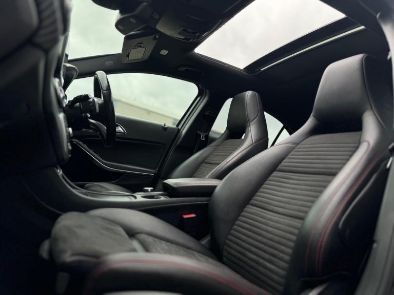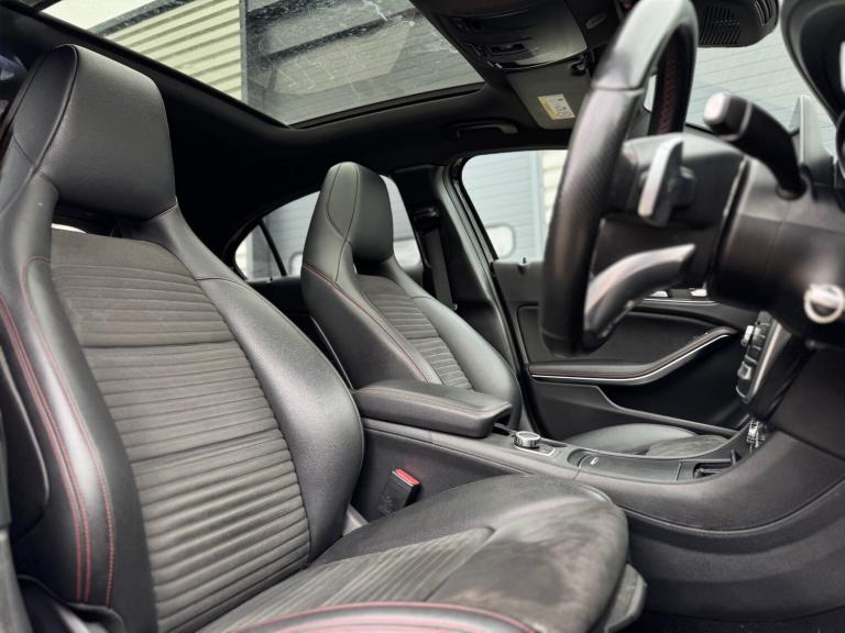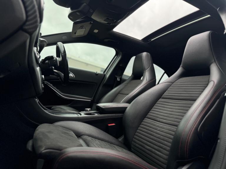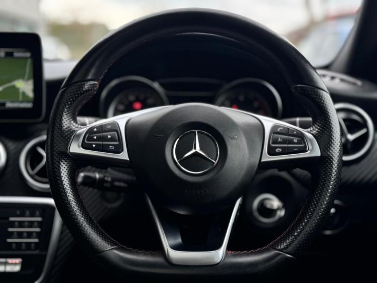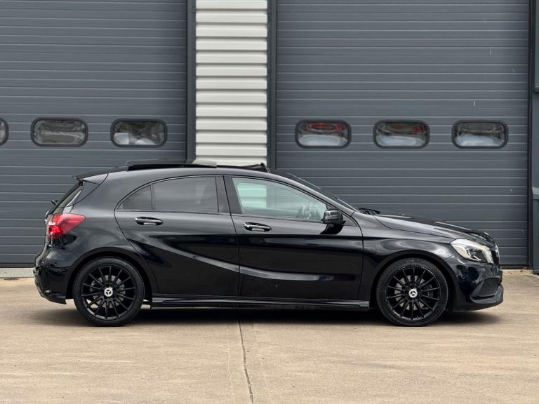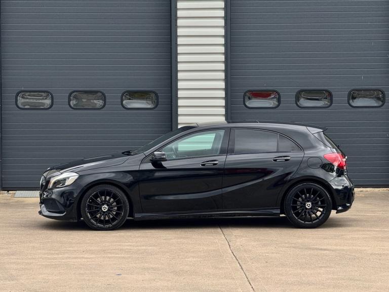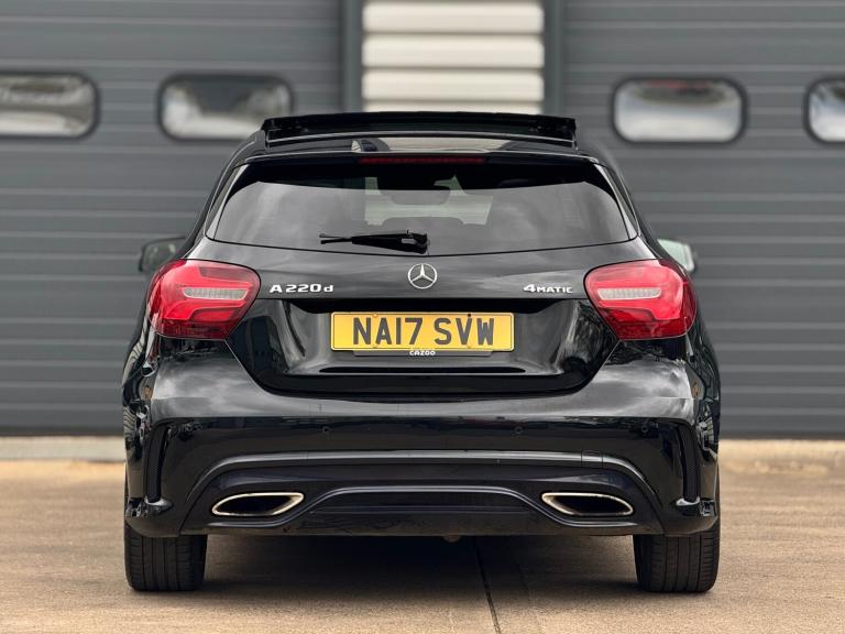 MERCEDES-BENZ A220 D AMG LINE PREMIUM PLUS DCT 2017 - FULL BLACK PACKAGE. A high specification and well maintained example of the A220d AMG Line Premium Plus, finished in a sleek full black package with only 49,800 miles. This model comes with the sought-after Premium Plus package, featuring a large upgraded navigation display, panoramic glass roof, electric front seats (driver and passenger) and premium sports interior stitching. Additional features include front and rear parking sensors and smooth automatic DCT gearbox. The car has just had a major service and comes with a fresh advisory free MOT, 2 keys and is fully ULEZ compliant. Additional services include alloy wheel refurbishment, premium valet and a platinum level warranty. We offer nationwide delivery. Viewings are by appointment only. Gold Standard Warranty included. A clean, high specification vehicle ready to drive away.
