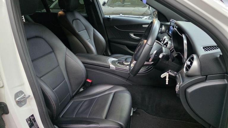 Mercedes C250d AMG Line finished in white and enhanced by our exclusive C43 style exterior package. This includes a GT front grille, Brabus front splitter, rear spoiler, C43 style quad exhaust rear diffuser, full exterior de-chrome, Gloss black 18in AMG alloys with contrasting red calipers. (19'' wheel options available for an extra cost)The cars luxurious interior consists of heated black leather seats, black ash centre console and brushed aluminium trims.Spec includes drive select, parking sensors, reverse camera, satellite navigation, digital radio, bluetooth audio, phone preparation and much more....