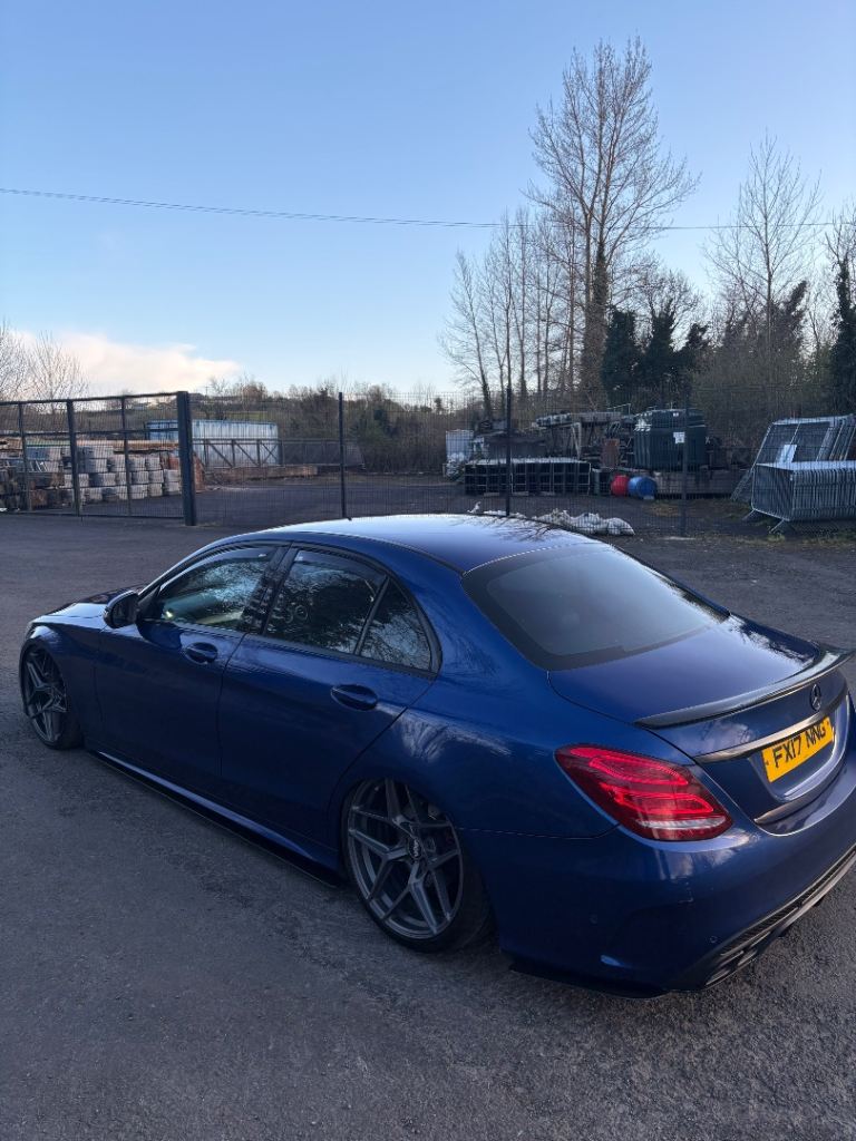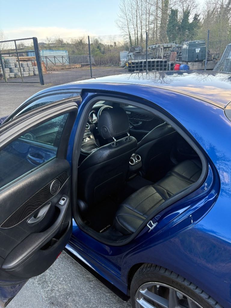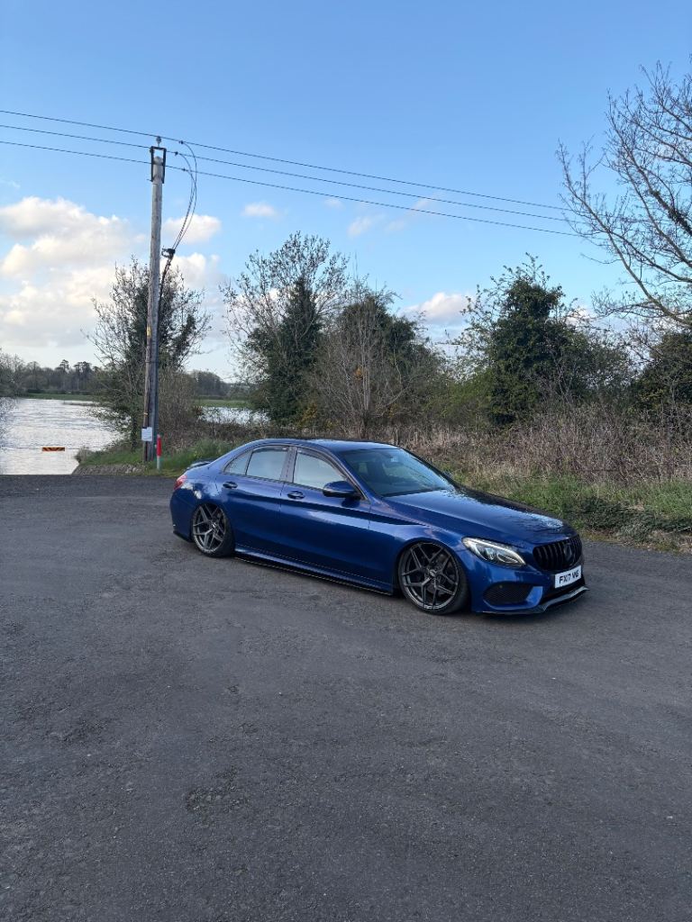 🔵 amg black line style , electric memory , heated black leather seats , black cloth mats , black cloth roof , de chromed , c63 style front grill , splitter , side splitters , rear diffuser , twin tail pipes , carbon fibre spoiler , big amg drilled brakes , 20” alloys