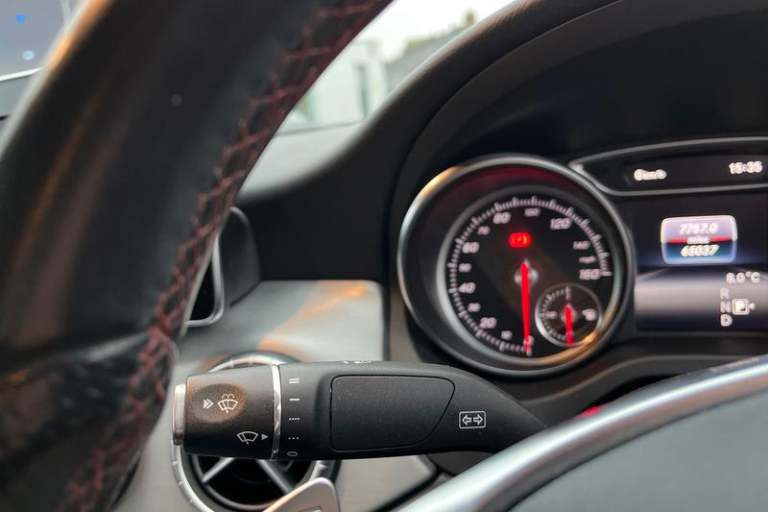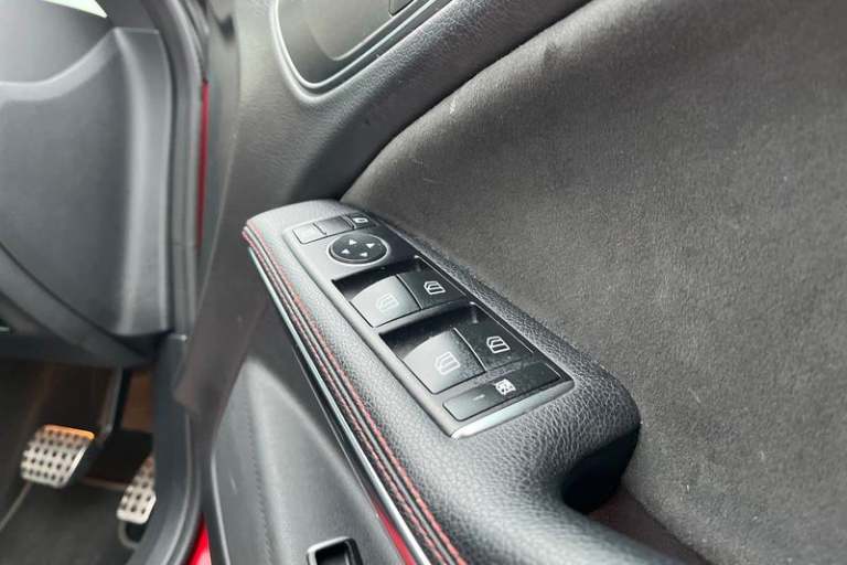 Active park assist with parktronic system, Attention assist, Bluetooth system, Collision prevention assist plus, Direct steering, DYNAMIC SELECT with a choice of driving modes (ECO, Comfort, Sport, Sport+ and Individual), Low fluid warning light, Outside temperature gauge, Service indicator (ASSYST), Smartphone integration with Apple CarPlay and Android auto, Trip computer, Adaptive brake lights, AMG body styling, Automatic headlights, Automatic rain sensing wipers, Black high gloss beltline, Body colour bumpers, Body colour door handles, Body colour side skirt, Diamond grille with pins in chrome and single louvre in high-gloss black with chrome inserts, Dual stainless steel exhaust tailpipes, Electric adjustable heated door mirrors, Front and rear electric windows, Heated rear window with timer, High gloss black door mirror housing, LED headlights with LED daytime running lights, LED tail lights, Privacy glass, 1/3 to 2/3 split folding rear seats, 3 spoke flat bottomed leather steering wheel, Auto Mercedes-Benz child seat recognition sensor, Black roof lining, Door sill illumination, Dual zone climate control, Front centre armrest with storage box, Front footwell lights, Front head restraints, Front sports seats, Gearshift paddles, Height/reach adjustable steering column, Illuminated glovebox, Illuminated storage compartment, Isofix rear child seat fastenings, Load securing rings in luggage compartment, Multifunction steering wheel, Reading lights, Rear footwell lights, Rear