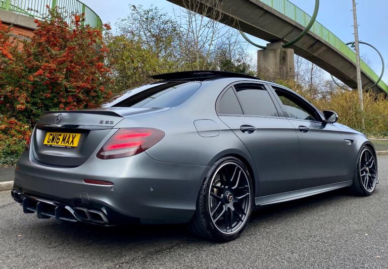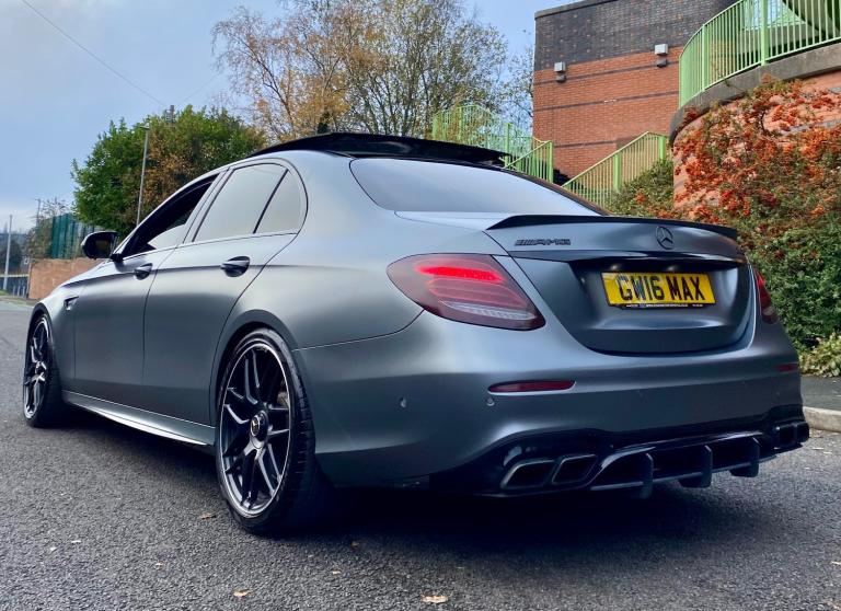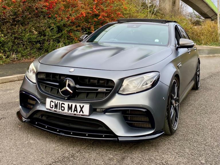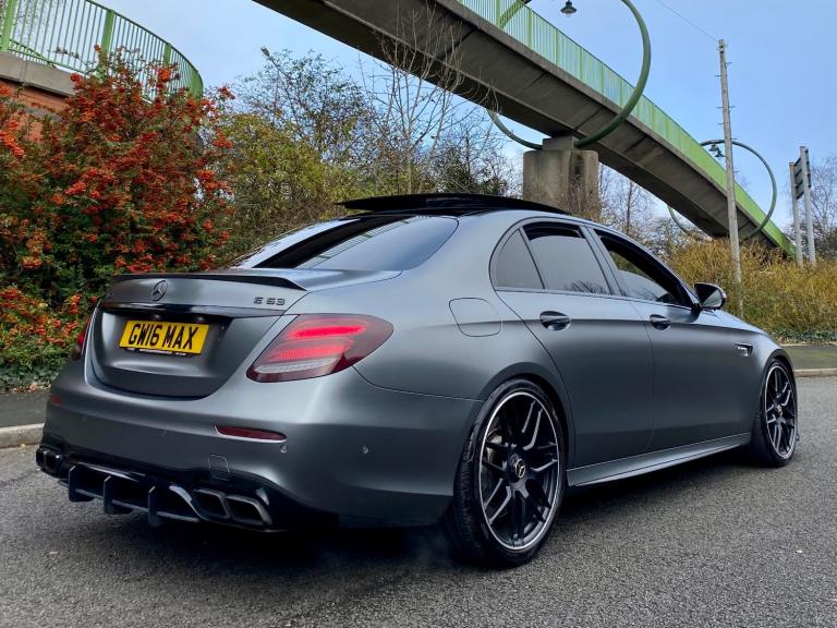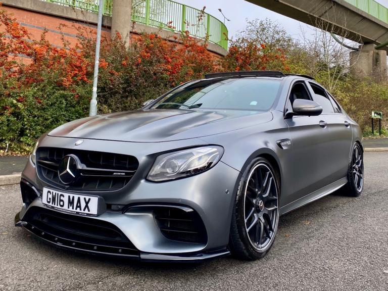 FOR SALE MERCEDES E63 AMG V8 4 MATIC 2017 (67) THIS IS NOT YOUR AVERAGE E63 PRESENTING THIS BEAUTIFUL MERCEDES WITH LUXURY, POWER & TRACTION FINISHED IN INDIVIDUAL MAGNO GREY PAINT + FULL SERVICE HISTORY WITH MERCEDES BENZ WITH A LAST SERVICE WITH PURE TUNING ALONG WITH A STAGE 2 PT Stage 2 Package |PT Custom Stage 2 ECU Tune |PT Custom TCU Tune | PT CPC Module Upgrade | Service B | Vehicle health check | Mercedes portal update | 820bhp 1200 nm torque FULL UNIQUE STYLING + FRONT SPLITTER + BRABUS STYLE CARBON REAR DIFFUSER + BRABUS STYLE BOOT LIP * AMG BLACK GRILL AMBIET LIGHTING + 360 CAMEREA + HEADS UP DISPLAY + BRUMESTER SURROUND SOUND SYSTEM | APPLE CARPLAY | SAT NAV | MULTIMEDIA | AMG DRIVERS PACK | AMG NIGHT PACK | AMG PERFORMANCE EXHAUST SYSTEM | 20"" AMG ALLOY WHEELS + 15mm & 20mm WHEELS SPACERS | FULL PANORAMIC SUNROOF | GOSHT ALARM | SCORPION ALARM BOTH ACTIVE | 2KEYS | V5C PART EXCHANGE TRY ME