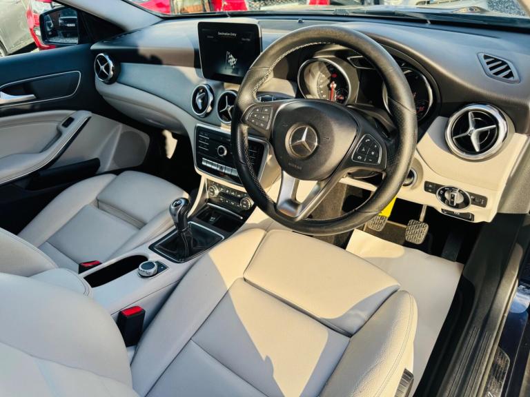 Discover this 2017 Mercedes Benz GLA200d Sport 6 speed manual, a stylish and practical compact SUV. This Euro 6 Ulez compliant, full service history 7 services This Mercedes Benz GLA200d Sport offers excellent running costs, achieving an impressive fuel economy of up to 67 miles per gallon. Its low CO2 emissions and low insurance group rating, presented in the desirable Sport trim, It comes equipped with features such as Dynamic Select with a Choice of Driving Modes - ECO-Comfort-Sport and Individual, Headlight Assist for automatic headlight activation, Halogen Headlights, multifunction steering wheel, cruise control with Limiter, cream leather interior, tow bar, start stop, KEYLESS-GO Starting, ATTENTION Assist, Active Braking Assist, Adaptive Brake Assist with Hold Function and Hill Start Assist, rear isofix seats, reversing camera offering a 180 degree view to aid parking, Aluminium Finish Roof Rails, THERMOTRONIC luxury automatic climate control, Stay connected and entertained with Smartphone Integration, compatible with both Android Auto and Apple CarPlay,