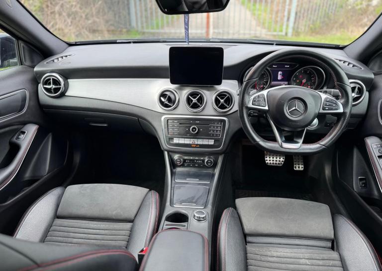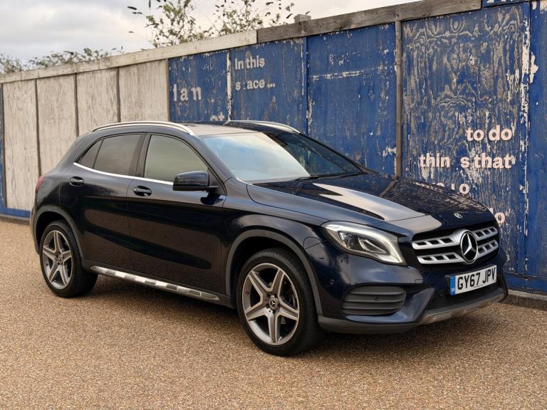 1 Owner From Brand New, Freshly Serviced, HPI CLEAR, FSH, Genuine Warranted Mileage - 3 Months Warranty - included in Price - Longer/Extended Warranty Options Available. ULEZ Compliant, Automatic. This Mercedes Benz GLA200 AMG Line (Premium) from 2017 boasts a clear vehicle history and has had only one owner, offering peace of mind. This stylish SUV features a 1.6 litre petrol engine, meeting Euro 6 emissions standards. The AMG Line trim enhances its sporty appeal, while the Premium Package adds desirable features such as LED headlights, front and rear parking sensors, and heated seats for added comfort. You'll also find the Audio 20 Radio CD system with Bluetooth connectivity, a reversing camera with a 180 degree view for easier manoeuvring, and THERMOTRONIC dual zone automatic climate control. Seamlessly integrate your smartphone with Android Auto and Apple CarPlay for convenient access to your apps and music.Experience impressive performance with this GLA, accelerating from 0 to 62mph in just 8.1 seconds. Its fuel economy is a notable highlight, achieving up to 49 miles per gallon, which indicates it is more economical than many similar vehicles. Furthermore, its low CO2 emissions also set it apart, suggesting a more environmentally conscious choice.