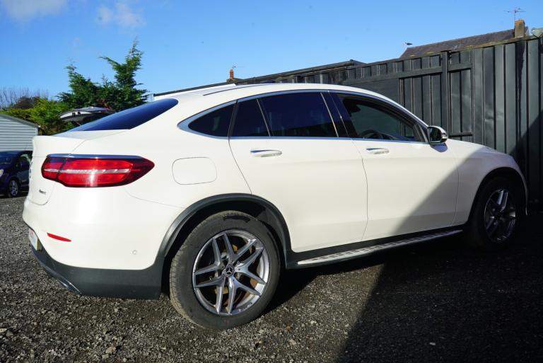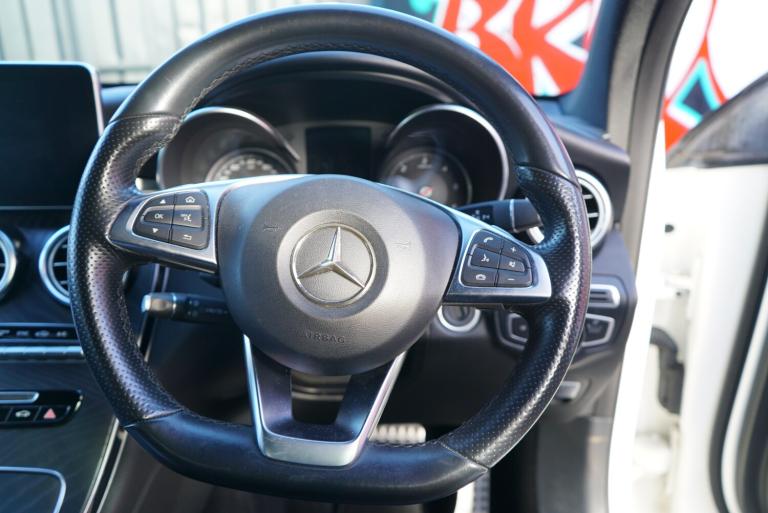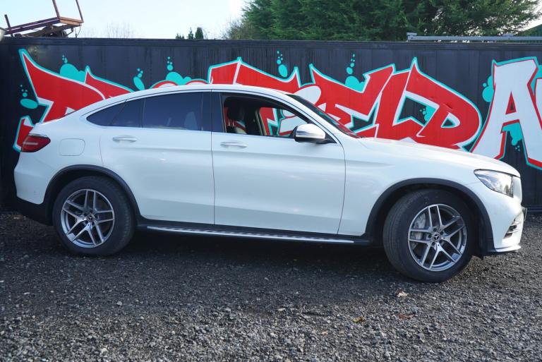 Brookfield Autos presents this 2017 Mercedes-Benz GLC350d V6 AMG Line (Premium Plus) Coupe finished in White with contrasting Black Leather interior. Coupe 5dr is a sleek and powerful SUV with only 80200 miles on the clock and a MOT that doesn't expire until 10/04/2026. Powered by a 3.0 V6 diesel engine, this 5-seater vehicle is ULEZ compliant. This car comes with: Full Service History, Electric sliding Sunroof, 19 inch AMG Alloys, Keyless Start/Stop, Reverse Camera, Adjustable Lumbar Support, Front and Rear Parking Sensors, Heated Seats, Control, Dynamic Drive Select, Speedtronic Cruise with a variable speed limiter, DAB Radio, automatic two zone climate control, Satellite navigation, Multi Functional Flat bottom Steering wheel plus much more... With its Active Bonnet and 3.0L engine, this Euro 6 (s/s) compliant car is a stylish and reliable option for those in the market for a high-quality SUV. Features Include: , 19in alloy wheels - amg 5-twin-spoke design - painted in titanium grey, amg bodystyling - front and rear apron - side skirts, brake calipers - with mercedes-benz lettering and perforated front brake discs, chrome trim - front - side and rear, electric windows - 4 - with one-touch opening and closing - including obstruction sensors, mirror package, privacy glass - dark glass from b-pillar backwards, radiator grille - diamond grille with integrated star - chrome pins, tirefit tyre-sealant kit, tinted glass all round - single-layer safety glass, visible tailpipe exhaust trim integrated into rear bumper, abs - anti-lock braking system, active bonnet - pedestrian safety measure which detects an impact and raises bonnet, adaptive brake lights, adaptive brake system with hold function and brake drying in the wet, alarm system with immobiliser and interior protection, automatic child seat recognition sensor, collision prevention assist plus, dual-stage airbags - driver and front passenger - driver kneebag and windowbags for driver - front passenger and rear passengers, electric parking brake, electronic stability programme-esp with curve dynamic assist and crosswind assist, isofix child seat attachment points with top tether in rear - two outer seats, attention assist, active parking assist including parktronic, direct-steer speed sensitive steering, dynamic select with a choice of driving modes - comfort - eco - sport - sport plus - individual, fuel tank with increased capacity - 66-litres, outside temperature display - rear seat belt status