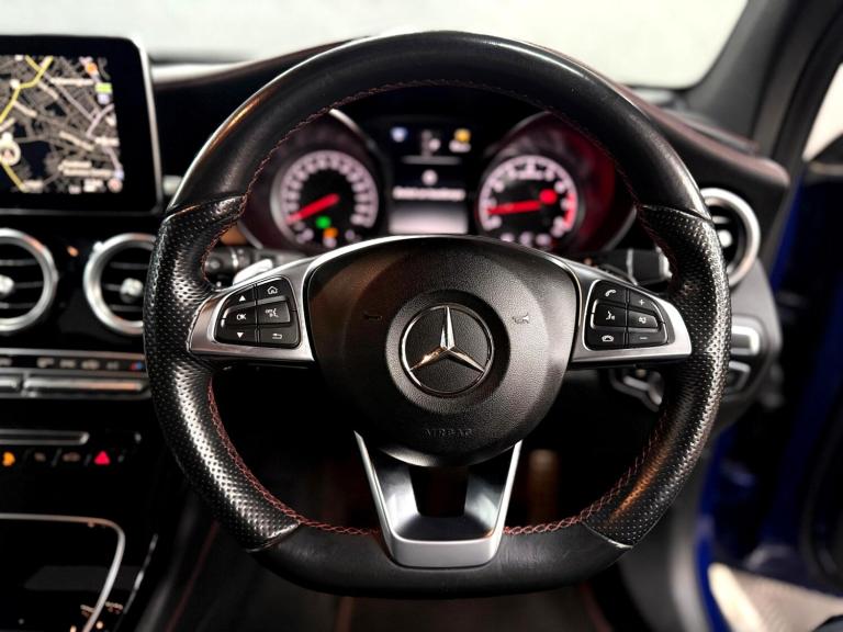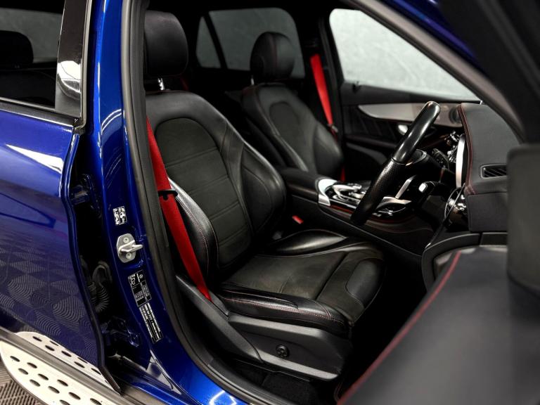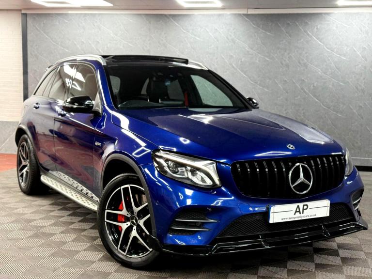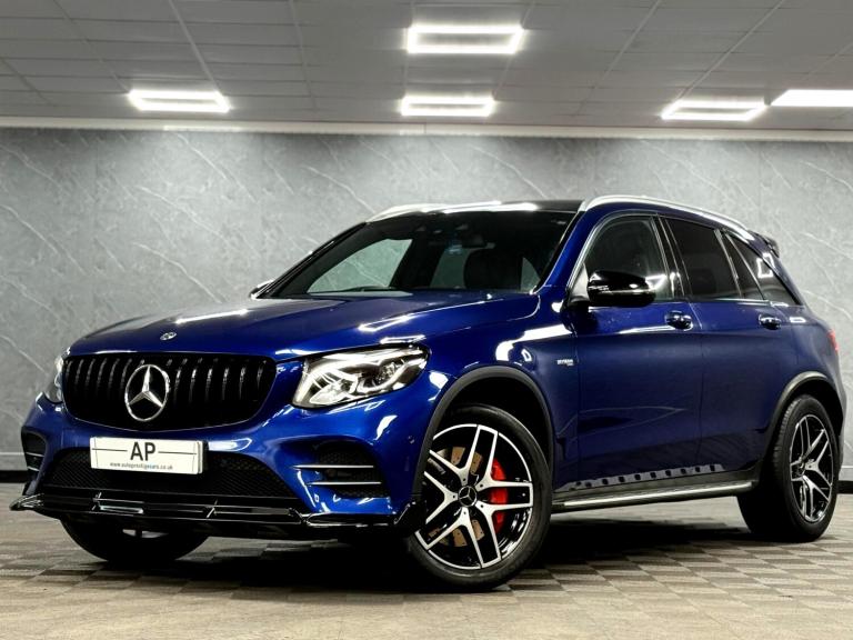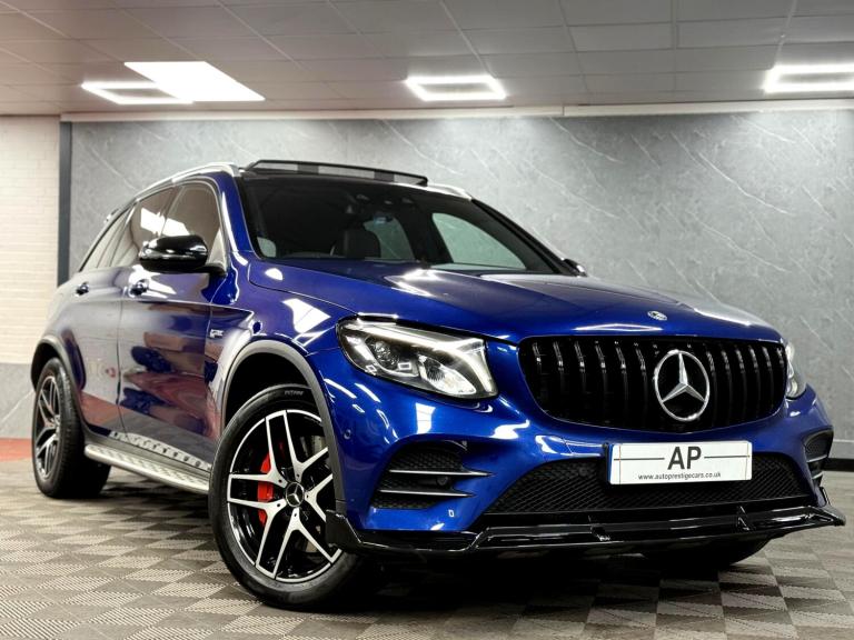AUTOPRESTIGE - HOME OF THE FINEST SELECTION OF BESPOKE PERFORMANCE AND PRESTIGE VEHICLES..BUY WITH COMPLETE CONFIDENCE...WE ARE PLEASED TO PRESENT THIS STUNNING MERCEDES-BENZ GLC43 V6 AMG FINISHED IN METALLIC BRILLIANT BLUE OVER 3 STAGE HEATED ELECTRIC MEMORY BLACK ARTICO LEATHER SPORTS SEATS WITH CONTRAST RED STITCHINGONLY 1 PREVIOUS OWNER FROM NEW BACKED BY A FULL MERCEDES-BENZ SERVICE HISTORY - JUST BEEN SERVICED BY MERCEDES-BENZ ASCOT AT 58286 MILES WHICH WAS A B SERVICE AS WELL AS SERVICE B WITH PLUS PACKAGE PERFORMED WHICH INCLUDED THE BRAKE FLUID AND REPLACEMENT KEY BATTERY - 6 SERVICES IN TOTAL WITH MAJORITY OF PAPERWORK FOR THE SERVICES -LOTS OF RECEIPTS IN THE PAPERWORKHERE AT AP WE PRIDE OURSELVES ON PROVIDING VEHICLES WHICH SUIT INDIVIDUAL TASTE, HENCE WE HAVE APPLIED A FULL GLOSS BLACK AERO KIT CONSISTING OF FRONT SPLITTER,FACELIFT STYLE PANOMERA GLOSS BLACK GRILLE AND EXTENDED GLOSS BLACK REAR BOOT SPOILER FURTHER ENHANCING THIS STUNNING SPORTY SUVBEING THE PREMIUM PLUS VARIENT, THIS GLC43 COMES PACKED WITH EXTRAS WHICH INCLUDE FULL EXTERIOR CHROME PACK,21"" 2-TONE GLOSS BLACK/POLISHED ALLOYS CONTRASTED OVER RED AMG CALIPERS,SLIDING PANORAMIC GLASS SUNROOF WITH BLIND,BURMEISTER PREMIUM SURROUND SOUND,HEATED FRONT SEATS,REAR VIEW CAMERA,INTERIOR AMBIENT LIGHTING,KEYLESS ENTRY/GO,PUSH BUTTON START,SWITCHABLE DRIVING MODES,SPORTS EXHAUST,FACTORY FITTED TOWBAR,CRUISE CONTROL,BT AUDIO,USB AUDIO,PRIVACY GLASS PLUS THE USUAL PREMIUM PLUS REFINEMENTS...SUPPLIED WITH 2 KEYS AND ALL SUPPORTING PAPERWORK..WE DO ACCEPT PART EXCHANGES
