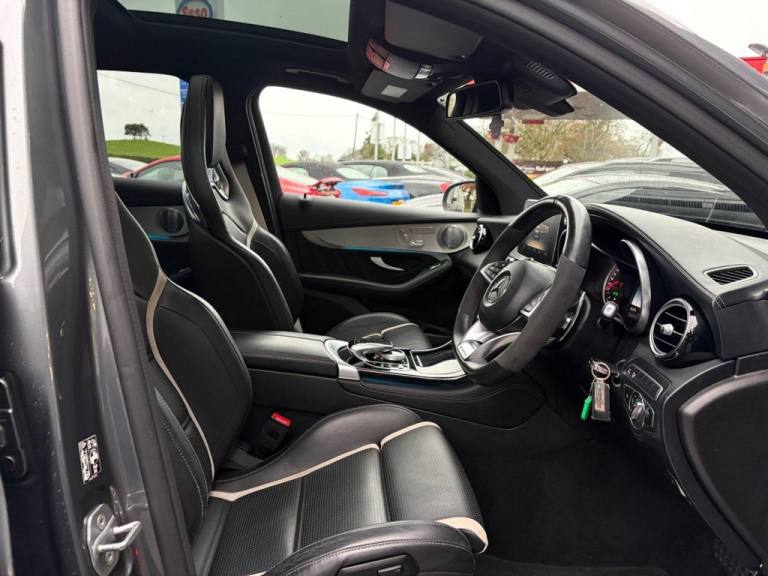 PER4MANCE CARS ARE DELIGHTED TO OFFER THIS STUNNING 2018 MERCEDES GLC63 AMG S PREMIUM (510PS) FINISHED IN SELENITE GREY METALLIC WITH FULL BLACK AMG LEATHER SPORTS SEATS AND WHITE PIPING, PANORAMIC GLASS SUNROOF, 360 CAMERA, BURMESTER SURROUND SOUND, AMG NIGHT PACKAGE, RUNNING BOARDS, UPGRADED SPORTS SEATS, WINTER TYRE SWOP, COMMAND ONLINE SYSTEM WITH SATELLITE NAVIGATION, BLUETOOTH AND DAB, FRONT AND REAR PARKING ASSIST, ATTENTION ASSIST, DYNAMIC SELECT WITH SPORT PLUS MODE, TYRE PRESSURE MONITOR, 21" CROSS SPOKE FORGED ALLOY WHEELS IN MATT BLACK WITH A TITANIUM RING, AMG BODYSTYLING, AMG SPORTS EXHAUST SYSTEM, AMG SPORTS EXHAUST, LED INTELLIGENT LIGHT SYSTEM WITH AUTOMATIC LIGHT ACTIVATION, AMBIENT LIGHTING, MEMORY SEAT PACKAGE, KEYLESS GO, EXCLUSIVE PACKAGE, RAIN SENSOR WIPERS, NAPPA LEATHER AMG PERFORMANCE MULTIFUNCTION STEERING WHEEL, HEATED FRONT SEATS, CRUISE CONTROL, CLIMATE CONTROL, AMG DRIVERS PACKAGE, AMG PERFORMANCE 4MATIC PLUS, AIR SUSPENSION, RACE START FUNCTION AND MUCH MORE... PLEASE CHECK TO SEE THE CAR IS ON SITE! Full dealer facilities available, Finance available, please apply via our website or call for a quote. We have a team of experienced buyers who hand pick our cars from all parts of the UK so you can buy with confidence all vehicles are HPI Clear and prepared to the highest standard. We believe in providing our customers with a personal and first class level of service, Full dealer facilities available, Part exchanges welcomed. Please call Sophie or Leigh on to enquire on this vehicle [Phone number removed] or email [Email address removed. Click Email button to contact us.] .20in Alloy Wheels - AMG 5-Twin-Spoke Design - Painted in Titanium Grey with a High-Sheen Finish, ABS - Anti-Lock Braking System, AMG Bodystyling - Front and Rear Apron-Side Skirts with Diffuser Fins, AMG Boot Logo in Central Screen, AMG Drivers Package, AMG Electronic Rear-Axle Limited-Slip Differential, AMG High-Performance Braking System, AMG Performance 4MATIC Plus, AMG Performance Seats, AMG Rear Apron with Diffuser Fins and Diffuser Board with Trim Strip in Matt Iridium Silver, AMG Side Sill Panels with Inserts in Matt Iridium Silver, AMG Spoiler Lip in Vehicle Colour, AMG Sports Exhaust System, AMG Track Pace - Records Lap Times on the Racetrack, ATTENTION Assist, Active Bonnet - Pedestrian Safety Measure which Detects an Impact and Raises Bonnet, Active Parking Assist including PARKTRONIC, Adaptive Brake Lights, Adaptive Brake System with HOLD Function and Brake Drying in the Wet, Air Body Control - Air Suspension for Front and Rear Axles with Continuously Adjustable Damping, Alarm System with Immobiliser and Interior Protection, Ambient Lighting, Automatic Child Seat Recognition Sensor, Badging - V8 BITURBO 4MATIC+ Lettering on Front Wings, Black Mirror Housings, Brake Calipers - Red with AMG Lettering, Burmester Surround Sound System, COMAND Online System, Chrome Trim - Front - Side and Rear, Collision Prevention Assist Plus, DAB Digital Radio Tuner, Door Mirrors - Electrically Adjustable and Heated, Dual-Stage Airbags - Driver and Front Passenger - Driver Kneebag and Windowbags for Driver - Front Passenger and Rear Passengers, Dynamic Select with a Choice of Driving Modes - Comfort - ECO - Sport - Sport Plus - Individual, EASY-PACK Load Compartment Cover - Removable, EASY-PACK Powered Tailgate, Electric Panoramic Glass Sunroof, Electric Parking Brake, Electric Windows - 4 - With One-Touch Opening and Closing - including Obstruction Sensors, Electronic Stability Programme-ESP with Curve Dynamic Assist and Crosswind Assist, Exclusive Package, Floor Mats - Black with AMG Lettering, Front Door Sill Panels with AMG Lettering, Fuel Tank with Increased Capacity - 66-litres, Glove Compartment Illuminated and Lockable, Headlamp Assist - Automatic Headlamp Activation, Headlamps - LED Intelligent Light System, High-Resolution 8.4-in Multimedia Colour Display, ISOFIX Child Seat Attachment Points with Top Tether in Rear - Two Outer Seats, Instrument Cluster with 5.5in TFT Multifunction Display, Interior Lighting Package, KEYLESS-GO Starting Function, LED Tail