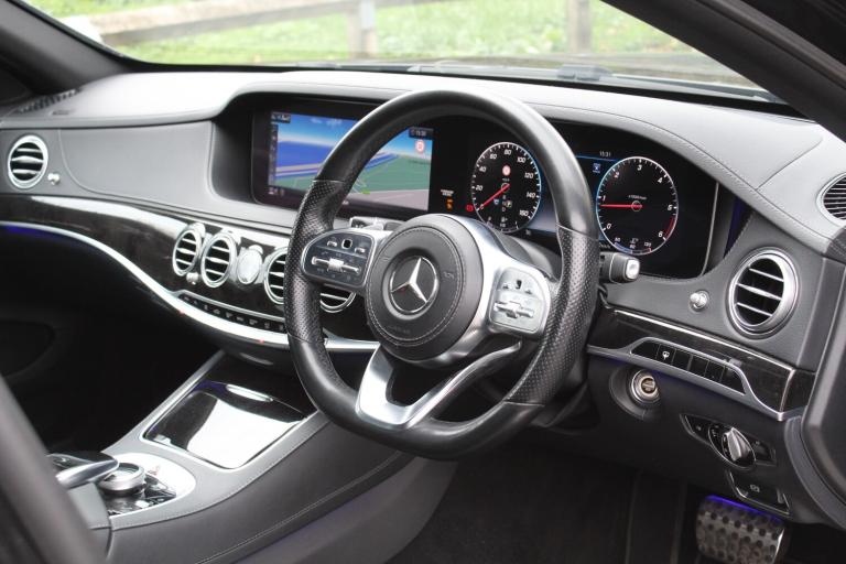We are delighted to offer this stunning 2018 (68) Mercedes-Benz S350Ld AMG Line Executive, W222 facelift. This example has had just two owners from new and comes with an impressive specification, including the desirable Executive Package, a £4,000 factory-fitted optional extra. This package includes electrically operated rear seats with memory function, comfort-ventilated rear seats with cooling and heating function, electrically operated blinds for the rear window and rear door windows, luxury rear head restraints with additional comfort cushions and rear luxury automatic climate control. The car is in excellent condition throughout and drives superbly. It has been impeccably maintained and, apart from 2020, has been serviced every year without fail, with six services in total. The most recent service was carried out by a reputable Mercedes specialist on the 25th of September 2025 at 115,658 miles. Finished in stunning Obsidian Black metallic with full black leather upholstery and contrasting Black Poplar wood interior trim. The specification includes: COMAND online system with media interface and touchpad, Dual-bonded widescreen cockpit display, Navigation with 3D map display, Reversing camera with front and rear parking sensors and active parking assist, Electrically adjustable front seats with memory function, Heated front seats, Electrically adjustable rear seats with memory function, Comfort-ventilated rear seats with cooling and heating function, Luxury rear head restraints with additional comfort cushions, Roller blind package with electrically operated blinds for the rear window and rear door windows, Automatic air conditioning with front and rear luxury climate control, Keyless-go comfort package, Privacy glass, 19"" AMG 5-twin-spoke design alloy wheels, AMG bodystyling, Wireless charging system for mobile devices, Smartphone integration with Apple CarPlay and Android Auto, Bluetooth phone interface with audio streaming, Linguatronic voice control, DAB digital radio, SD memory card slot, USB connectivity, Mercedes me connect, Cruise control, Speed limiter, Traffic sign assist, Active brake assist, Attention assist, Ambient interior lighting with a choice of 64 colour settings, Multibeam LED headlights with ultra range high-beam assist, Intelligent light system, LED tail lights, Electric folding door mirrors, 3-spoke multi-function sports steering wheel in black nappa leather with gearshift paddles, 9-speed automatic transmission with steering column gear selector, Electrically adjustable steering column with easy-entry/exit function, Electrically operated boot lid, Airmatic air suspension with level adjustment and adaptive damping system, Individual/Sport/Comfort/Eco drive mode options, Eco start/stop function, Tyre pressure monitoring system, Automatic headlight activation, Rain sensing windscreen wipers, Electric windows, Electric door mirrors, Remote central locking etc. This car is a Euro 6 diesel and fully complies with London's Ultra Low Emission Zone (ULEZ) and all other clean air zone regulations. It has been HPI checked and cleared, confirming there are no outstanding finance issues, insurance write-offs etc. The car comes with two keys and all the original owner manuals. The MOT is valid until the 6th March 2026 with no advisory items noted. A 3-month/3,000-mile warranty covering all major mechanical and electrical components is also included. All our vehicles come with free 12-month AA Breakdown Cover and are prepared and sold to the AA standard. We offer all usual dealer services, including competitive finance packages and nationwide delivery options. Five days drive-away insurance can be arranged. Part exchange welcome.
