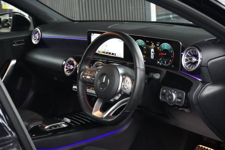 2018/68 Mercedes Benz A180 AMG Line Premium 7G-DCT 5 door hatchback 136 ps (Euro 6) - Automatic - Cosmos Black with half leather and half alcantara interior (heated front seats) - only 36k miles - Mercedes demonstrator and one private keeper - 2 remote keys - Full Mercedes main dealer service history - Just serviced for sale by Mercedes main dealer with full digital service history print out - Fresh 12 months MOT with no advisories - Platinum warranty - full 12 months AA roadside assistance also included! Premium Bridgestone tyres all round! Gloss black AMG alloy wheels (freshly refurbished) - Full A45 AMG Aero Package - AMG GT grill - Rear sun protection glazing - Ambient lighting - Apple Car Play/Android Auto - Rear view camera! Full 12 months MOT Platinum warranty included 12 months AA breakdown cover Autotrader Highly Commended Dealer 2018/19/20/21/22/23/24 AA Approved Dealer 2017/18/19/20/21/22/23/24 CarGurus Top Rated Dealer 2018/19/20/21/22/23.24 We are close to many local bus and train links. The nearest train station is Hairmyres which is on the East Kilbride line, if possible we will collect you if arranged by prior appointment. We have signed up to the AA Dealer Promise which means you are in safe hands dealing with us as an AA partner! All cars are provided with an AA history check, a minimum of 9 months MOT on all cars and 12 months AA breakdown cover or member upgrade as well as other exclusive AA benefits! Finance available?! Longer warranty options available!? Poor Credit = No Problem!? Part Exchange welcome with or without MOT?! Price checked to ensure best value!? Over 50 cars in stock!? Over 97% of our customers rate us 5 stars!.Cosmos Black, 18in Alloy Wheels - AMG 5-Twin-Spoke Design - Painted in Titanium Grey with a High Sheen Finish, ABS - Anti-Lock Braking System with BAS - Brake Assist, AMG Bodystyling - Front and Rear Apron and Side Skirts, ATTENTION Assist, Active Bonnet - Pedestrian Safety Measure which Detects an Impact and Raises Bonnet by 65mm, Active Brake ASSIST, Active Lane Keeping Assist, Adaptive Brake Assist with Hold Function and Hill Start Assist, Adaptive Brake Lights, Air Conditioning - THERMOTRONIC Luxury Automatic Climate Control - Two-Zone with Display, Air Vents with Surround and Cruciform Nozzle in Silver Chrome, Airbag - Kneebag for Driver, Airbags - Dual Stage - Driver and Front Passenger, Airbags - Head and Sidebags - Driver and Front Passenger, Airbags - Windowbags for Driver and Front Passenger, Airpanel - Active Radiator Shutters Open for Cooling Air and Close when not Needed to Improve Aerodynamics and Fuel Efficiency, Alarm System with Immobiliser and Interior Protection - Thatcham Category 1, Automatic Child Seat Recognition Sensor, Beltline Strips - Chrome, Bodystyling - Side Skirts - Body-Coloured, Brake Calipers - Mercedes-Benz Lettering on Front, Brake-Pad Wear Warning Indicator, Brushed Stainless Steel Sports Pedals with Rubber Studs, Bumpers - Body Coloured, Centre Armrest - Front with Stowage, Childproof Locks - Manually Operated for Rear Doors and Electrically Operated for Rear Power Windows, Chrome Weather Strip, Crash-Responsive Emergency Lighting, Cruise Control with Limiter, Cup Holder - Double - Front, DAB Digital Radio Tuner, Diamond Radiator Grille with Pins in Chrome - Silver-Painted Louvre and Insert in Chrome, Direct Steer Speed-Sensitive Power Steering, Door Handles - Body Coloured with a Chrome Accent, Door Mirrors - Electrically Adjustable and Heated with Integrated LED Indicators, Dual Bluetooth Interface - 2 USB Ports - Type C, Dynamic Select with a Choice of Driving Modes - ECO-Comfort-Sport and Individual, ESP - Electronic Stability Programme with ASR - Acceleration Skid Control, ESP Curve Dynamic Assist, Electric Parking Brake, Electric Windows - 4, Exhaust System - Twin Trapezoidal Tailpipes in Polished Stainless Steel, First Aid Kit and Warning Triangle, Floor Mats - Red Stitched Edging - AMG Lettering, Footwell Lights in Front, Front Door Sills with Mercedes-Benz Lettering, Glass - Rear Windscreen - Heated with Timer Control, Glove Compartment - Illuminated, Hard-Disk Navigation, Headlamp Assist - Automatic Headlamp