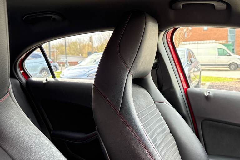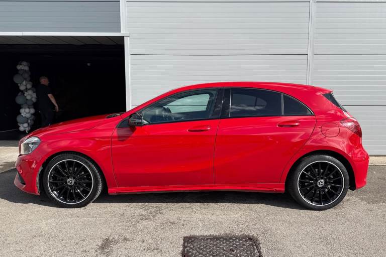 This red Mercedes-Benz A Class 2.1 A200d AMG Line (Executive) 7G-DCT Euro 6 (s/s) 5dr combines premium design, strong efficiency and everyday practicality. Powered by a 2.1 diesel engine producing 136 PS and paired with an automatic transmission, it delivers a smooth and refined drive, ideal for both commuting and longer motorway journeys. Externally, the AMG Line styling gives this A Class a sharp and dynamic look, enhanced by 18in AMG alloy wheels, sleek body styling and chrome detailing. The sporty rear design with twin exhaust finishers adds to its premium presence, while the reversing camera helps make parking easier and more controlled. The boot offers practical space for daily use, and the split-folding rear seats provide added flexibility when carrying larger items. Inside, the cabin feels both sporty and refined, featuring AMG sports seats, carbon-fibre style trim and a flat-bottomed leather multifunction steering wheel. Dual-zone automatic climate control keeps the cabin comfortable for both driver and passengers, particularly during colder winter journeys. Ambient lighting also allows you to tailor the interior atmosphere to suit your mood. The infotainment system includes a central media display with radio, Bluetooth connectivity and navigation, alongside vehicle menus and customisation options. Dynamic Select driving modes allow you to adjust the driving experience to suit your style, adding extra versatility to every journey, while cruise control helps make l...