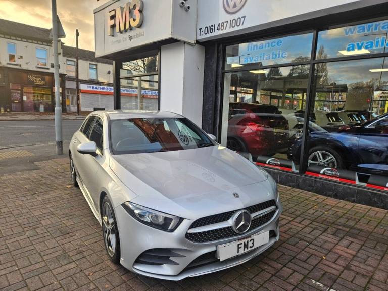 WE AT FM3 Cars would like to offer you another perfect example MERCEDES -BENZ A-CLASS 1.5 A180 D AMG LINE, 5 Door, 116 BHP, Finished in Metallic Silver with Half Leather Interior, Heated Seats, 18inch Alloys, Reverse Camera, 2 Keys, Service History , Lovely looking Car, very clean Condition inside and out side, Drives perfect. Uk Main Land Delivery and Finance Options Available, Reserve this car Today with only £200 Deposit. All of our cars come provided with a service and MOT. HPI reports are available for all vehicles. Warranties available, subject to suit each individual vehicle. We partner with a wide variety of finance companies, decisions can be made within 60 seconds. Drive your dream car away within 1hour. 5 day drive away insurance available at an additional cost. All part exchanges welcome. Tel; 0161 487 1007. We do take great care in describing the vehicle, its features and history, but errors can be made. Please feel free to ask the sales staff for any particular feature or detail you are not sure about before purchase, as this can not be rectified after purchase. .18in Alloy Wheels - AMG 5-Twin-Spoke Design - Painted in Titanium Grey with a High Sheen Finish, ABS - Anti-Lock Braking System with BAS - Brake Assist, AMG Bodystyling - Front and Rear Apron and Side Skirts, ATTENTION Assist, Active Bonnet - Pedestrian Safety Measure which Detects an Impact and Raises Bonnet by 65mm, Active Brake ASSIST, Active Lane Keeping Assist, Adaptive Brake Assist with Hold Function and Hill Start Assist, Adaptive Brake Lights, Air Conditioning - THERMOTRONIC Luxury Automatic Climate Control - Two-Zone with Display, Air Vents with Surround and Cruciform Nozzle in Silver Chrome, Airbag - Kneebag for Driver, Airbags - Dual Stage - Driver and Front Passenger, Airbags - Head and Sidebags - Driver and Front Passenger, Airbags - Windowbags for Driver and Front Passenger, Alarm System with Immobiliser and Interior Protection - Thatcham Category 1, Automatic Child Seat Recognition Sensor, Beltline Strips - Chrome, Bodystyling - Side Skirts - Body-Coloured, Brake Calipers - Mercedes-Benz Lettering on Front, Brake-Pad Wear Warning Indicator, Brushed Stainless Steel Sports Pedals with Rubber Studs, Bumpers - Body Coloured, Centre Armrest - Front with Stowage, Childproof Locks - Manually Operated for Rear Doors and Electrically Operated for Rear Power Windows, Chrome Weather Strip, Colour Inserts in Air Vents, Controller on Centre Console with Chrome Surround, Crash-Responsive Emergency Lighting, Cruise Control with Limiter, Cup Holder - Double - Front, DAB Digital Radio Tuner, Direct Steer Speed-Sensitive Power Steering, Direction Indicators with Lane-Changer Function, Door Handles - Body Coloured, Door Mirrors - Electrically Adjustable and Heated with Integrated LED Indicators, Dual Bluetooth Interface - 2 USB Ports - Type C, Dynamic Select with a Choice of Driving Modes - ECO-Comfort-Sport and Individual, ESP - Electronic Stability Programme with ASR - Acceleration Skid Control, ESP Curve Dynamic Assist, Electric Parking Brake, Electric Windows - 4, Exhaust System - Twin Trapezoidal Tailpipes in Polished Stainless Steel, First Aid Kit and Warning Triangle, Floor Mats - Red Stitched Edging - AMG Lettering, Footwell Lights in Front, Front Door Sills with Mercedes-Benz Lettering, Glass - Rear Windscreen - Heated with Timer Control, Glove Compartment - Illuminated, Hard-Disk Navigation, Headlamp Assist - Automatic Headlamp Activation, Hey Mercedes - Voice Activation, High Level Third Brake Light - LED, ISOFIX and Top-Tether Child Seat Fixing Poi