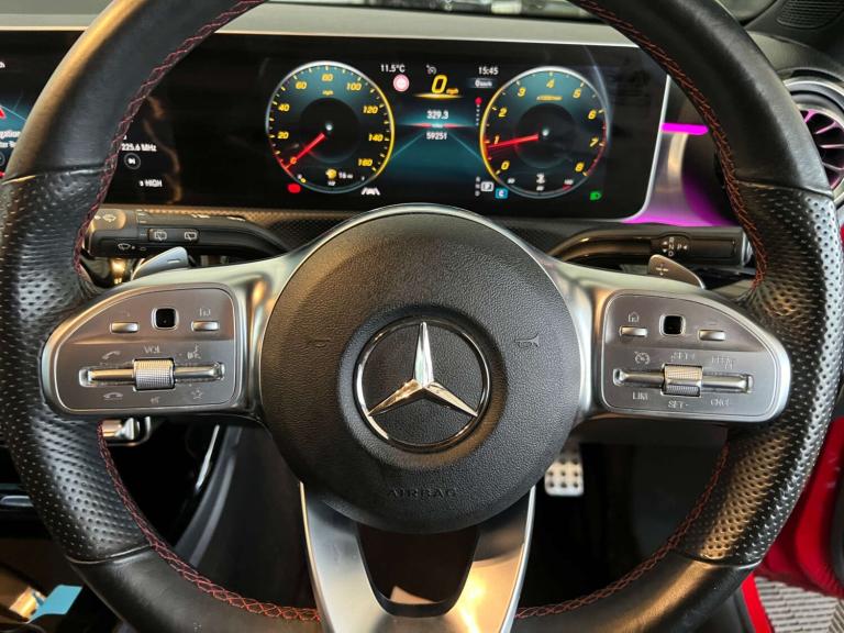 Introducing the Mercedes-Benz A-Class 1.3 A 200 AMG Line Premium Auto 5dr – a stunning blend of luxury, performance, and style. With its eye-catching Jupiter Red finish and sleek design, this vehicle is sure to turn heads wherever you go.Having covered just 59,244 miles, this A-Class has been meticulously maintained by its three previous owners, ensuring it remains in excellent condition. Step inside and you'll be greeted by the exquisite Artico Leather-Dinamica Microfibre interior, featuring black upholstery with striking red contrast stitching that perfectly complements the exterior.The A-Class is not just about looks; it's packed with advanced features to enhance your driving experience. The Light Longitudinal-Grain Aluminium trim adds a touch of sophistication, while the Advanced Navigation Package ensures you reach your destination with ease and confidence.Whether you're navigating city streets or cruising on the open road, the Mercedes-Benz A-Class delivers a smooth and responsive ride, thanks to its powerful 1.3-litre engine and AMG Line Premium Auto transmission.Don't miss the opportunity to own this exceptional vehicle that combines elegance, performance, and cutting-edge technology. Experience the thrill of driving a Mercedes-Benz A-Class today. Contact us to arrange a test drive and discover why this car is the perfect choice for discerning drivers.