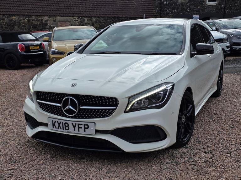 Automatic CLA estate with AMG Line sports trim 2018 MERCEDES BENZ CLA CLASS 2.1 CLA200D AMG LINE SHOOTING BRAKE £13450 73,000 miles Arctic White Automatic transmission with paddle shift Artico leather microfibre sports seats AMG sports body styling 136BHP returning 68MPG Apple CarPlay and Android Auto LED headlights, navigation system, electric tailgate, dynamic select, front and rear parking sensors, cruise control, keyless go, dual zone climate control, auto headlights and wipers AA Cars Motor Dealer Free 3 month warranty included Free 12 months AA Breakdown Cover Finance options available Part exchange welcome Rely Motors Ltd, Bankhead Buildings, Kinglassie, KY5 0UH relymotors.com 01592770834 [Phone number removed] [Email address removed. Click Email button to contact us.] Specification includes 18in Alloy Wheels AMG 5 Twin Spoke Painted in Black with a High Sheen Finish, 7in Tablet Style Colour Display, AMG Bodystyling, ATTENTION Assist Alerts the Driver to Increasing Fatigue and Inattention, Active Bonnet, Air Conditioning Air Vents with Chrome Surround and Cruciform Nozzle, Ambient Lighting Interior Door Handles, Ambient Lighting in Headrests, Anti Theft Protection Package, Automatic Child Seat Recognition Sensor Pressure Sensor, Automatic Front Passenger Airbag Deactivation, Beltline Strips Black, Bumpers Body Coloured, Crash Responsive Emergency Lighting, Cruise Control with Limiter, Door Handles Body Coloured, Door Mirrors Electrically Adjustable and Heated, Dynamic Select with a Choice of Driving Modes ECO Comfort Sport and Individual, ESP Electronic Stability Programme with ASR Acceleration Skid Control, ESP Curve Dynamic Assist, Easy Pack Automatic Powered Tailgate, Electric Parking Brake, Electronic Key Chrome Surround, First Aid Kit and Warning Triangle, Footwell Lighting Front and Rear, Headlamp Assist Automatic Headlamp Activation in Dark Conditions, Headlamps LED High Performance with Integrated LED Daytime Running Lights, Illuminated Front Door Sills with Mercedes Benz Lettering, Illuminated Glove Compartment, Instrument Cluster with 4 Analogue Dials and Needles Suspended in Six o Clock Position, Interior Lighting Courtesy White and Warning Red Lights in the Front Doors and Boot Lid, Interior Lighting Sun Visor with Illuminated Vanity Mirror for Driver and Front Passenger, Interior Lighting in Rear with Integral Reading Lights and Locator Lighting, KEYLESS GO Starting Function, Lighting in Stowage