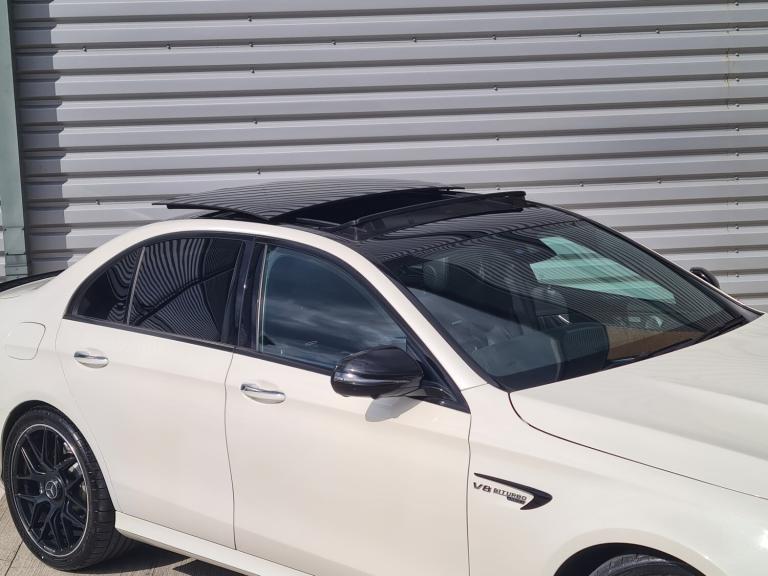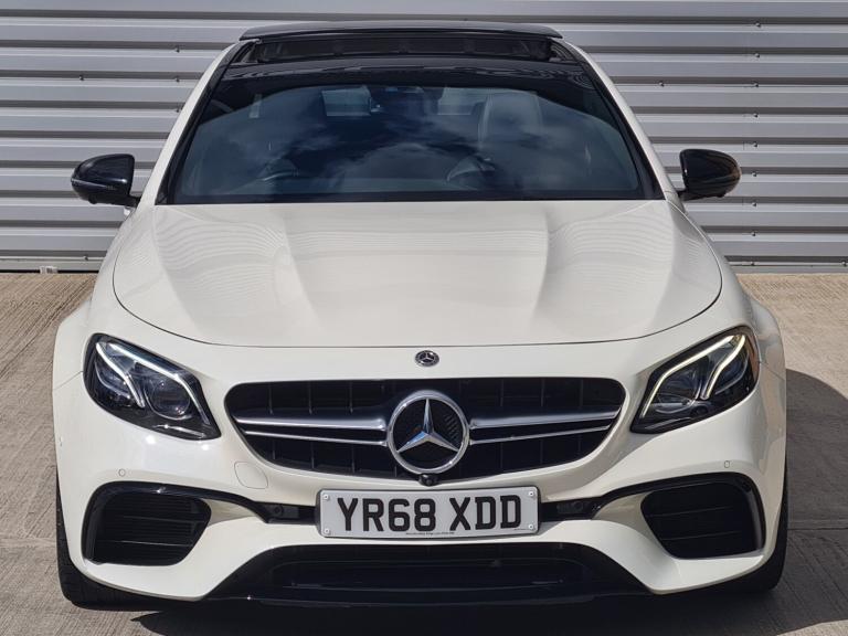 Rare Designo Diamond White - Premium Plus - Sport+ Driving Mode2018 (68) Mercedes-AMG E63 4MATIC+ Premium Plus - Designo Diamond White Pearl - 33,000 miles. Few cars combine power, presence, and luxury quite like the Mercedes-AMG E63 4MATIC+ Premium Plus. Finished in the rare and breathtaking Designo Diamond White Pearl, this example features full AMG Nappa leather interior, offering the perfect blend of performance engineering and executive comfort.With just 33,000 miles from new, it has been cared for to the highest standard, supported by a full and detailed service history with five services in total, three with Mercedes-Benz main dealers and the latest two with a respected AMG specialist.Its 4.0-litre V8 BiTurbo produces a formidable 571 bhp, delivered through the AMG Speedshift MCT 9-speed transmission and fully variable 4MATIC+ all-wheel drive system. From effortless motorway cruising to explosive acceleration, this car is as thrilling on the open road as it is composed in the city. In Sport+ mode the E63 becomes even more dynamic. Throttle response is sharpened for instant acceleration, gear changes are quicker and more aggressive, the AMG Ride Control+ suspension lowers and stiffens for flatter cornering, steering is more direct for precise control, stability and traction systems adopt a more performance-focused setting, and the exhaust valves open wider to unleash a louder, more exhilarating AMG soundtrack. Capable of sprinting from 0-62 mph in around 3.5 seconds, it delivers supercar performance in a luxury saloon package.As a Premium Plus model, it is equipped with a panoramic sliding glass sunroof, Burmester surround sound, heated front seats with memory, dual 12.3-inch widescreen digital displays, Keyless-Go, Multibeam LED headlights, privacy glass, 64-colour ambient interior lighting, the optional 360-degree camera system with Remote Parking Assist, and AMG Ride Control+ suspension with adjustable ride height and adaptive damping. This advanced system uses air suspension and electronically controlled dampers to allow the driver to switch between comfort-oriented cruising and track-capable precision at the touch of a button, adapting instantly to road conditions for maximum stability and agility.This example also benefits from the highly desirable 20-inch AMG forged cross-spoke alloy wheels (code 751).With only two mature previous owners, unmodified originality, and superb condition throughout, this E63 stands as one of the finest examples on the market. It is HPI clear and supplied with two keys, full book pack, and MOT until 28 December 2025.Free delivery and part exchange welcome. Open seven days a week. Viewing strictly by appointment. Please call us for more information.