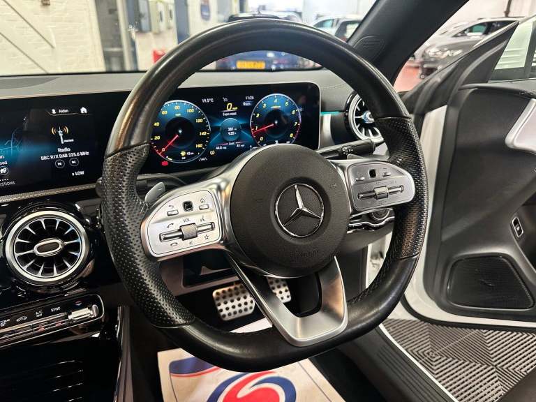 2019 69 MERCEDES-BENZ 1.3 CLA 180 AMG LINE 4DR PREMIUM PLUS AUTO.^^This Vehicle Comes With Warranty As Standard, Please Call Us For More Details!^^Stunning High Specification Example Presented In Mercedes Polar White Paintwork With Contrasting Black Leather Seats Complete With 18 Inch Grey Alloy Wheels With A Diamond Cut Finish.^^Covering 36,000 Miles From New, Backed Up With Full Service History Which Is Up To Date With The Digital Service Print Out To Hand. Very Clean Throughout With Excellent Bodywork, Unmarked Interior And Outstanding Wheels, New Owner Won’t Be Disappointed. ^^Its 1.3 Litre Turbo Petrol Engine Produces 134Bhp And 201Nm Of Torque. This Is Matched With Its 7 Speed Automatic Gearbox With The Option Of Changing Gear With F1 Style Paddle Shifters Which Makes For A Superb Drive!^^Outstanding Spec Includes.^*Premium Plus Pack.^*Mercedes Polar White Paintwork.^*Black Heated Leather Memory Seats.^*18 Inch Grey Alloy Wheels With A Diamond Cut Finish.^*Mercedes Drive Modes. (Efficiency, Comfort, Sport, Individual)^*Electronic Tilt And Slide Panoramic Sunroof.^*Electronic Retractable Roof Blind.^*Multi Function Steering Wheel.^*Cruise Control System.^*Virtual Dash.^*Keyless Start.^*Digital Dual Climate Control.^*Assist Systems.^*Lane Keeping System.^*Electric Adjustable Wing Mirrors.^*Heated Wing Mirrors.^*Parking Sensors.^*Reverse Camera.^*Automatic Xenon Headlights.^*Automatic Windscreen Wipers.^*Mercedes Multi Media Interface.^*Satellite Navigation.^*Mercedes ‘ME’ ^*Online Music.^*Touch Pad.^*DAB Radio.^*Bluetooth Connectivity.^*USB-C Inputs.^*Drive Dynamics.^*Ambient Interior Lighting.^*Electronic Parking Brake.^*Illuminated Door Sills.^*Split Folding Rear Seats.^^Excellent Standard Spec Includes, Electric Adjustable Seats, Electric Windows, Electric Mirrors, Central Lock, Trip Computer, Auto Dimming Rear View Mirror, Front Arm Rest, Front And Rear Interior Lights, Rear Fog Lights, Rear Heated Screen, 12V, Traction Control, Isofix And Much More.^^Genuine Miles Backed Up With Full Service History and Previous MOT Certificates To Verify Miles, Part Exchange Welcome Contact Us For A Fair And No Obligation Valuation.^^All Our Vehicles Have Been Road Tested With Multi Point Checks And We Welcome RAC Or AA Inspections, For Your Added Peace Of Mind All Of Our Vehicles Are HPI Clear.^^We Can Provide A Decision Within 30 Minutes Please Call Us To Discuss Your Requirements, Our Finance Partners Include Close Brothers | CF247 | Motonovo | Evolution And Others.^^We Offer Full Dealer Facilities Including A Comfortable Customer Office An Indoor Viewing Area And We Accept All Methods Of Payment, We Are Open 7 Days A Week Please Call Ahead To Ensure The Vehicle Of Interest Is Still Available, Sales 0161 336 2007 Or General Enquiries 0161 335 0008.^^Every effort has been made to ensure the vehicle has been described accurately in accordance with its age and mileage, The data above details the usual specification of the most recent model of this vehicle and may vary for the actual vehicle for sale.^^Please always check the vehicle specification prior to purchase. If You Have Any Questions Please Get In Touch And We Will Be Happy To Help.^^All Our Vehicles Come With Warranty Included, Extended Warranty Options Available, We Offer Finance With Competitive HP And PCP Deals Available, Visit Our Website To Use Our Online Calculator And Apply Online Today! / Call us :