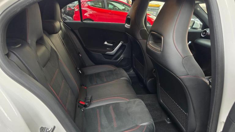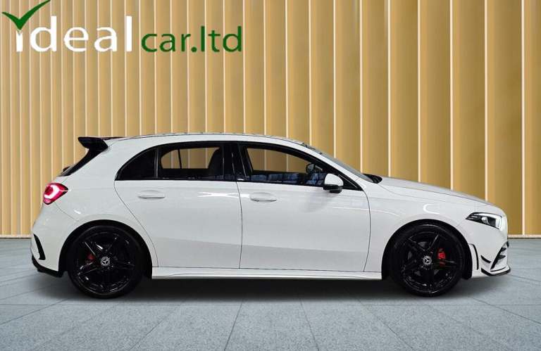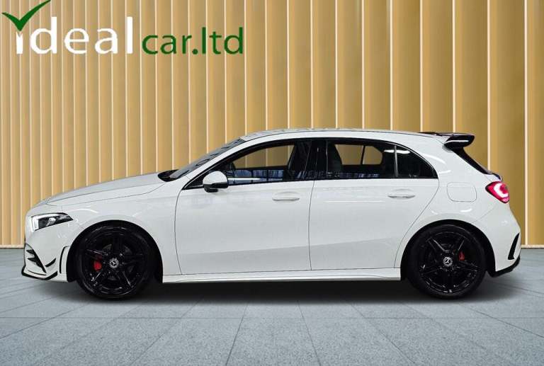 Mercedes-Benz A Class 1.3 A200 AMG Line finished in white and tastefully enhanced with our contrasting gloss black A45 AERO KIT. This gives the car a complete sports makeover and includes a GT front grille, front splitter and canards, rear spoiler, rear quad tip diffuser a full exterior de-chrome and gloss black AMG alloys with contrasting red calipers.The cars modern interior includes sport seats, virtual cockpit, touch screen infotainment system, climate control and much more.