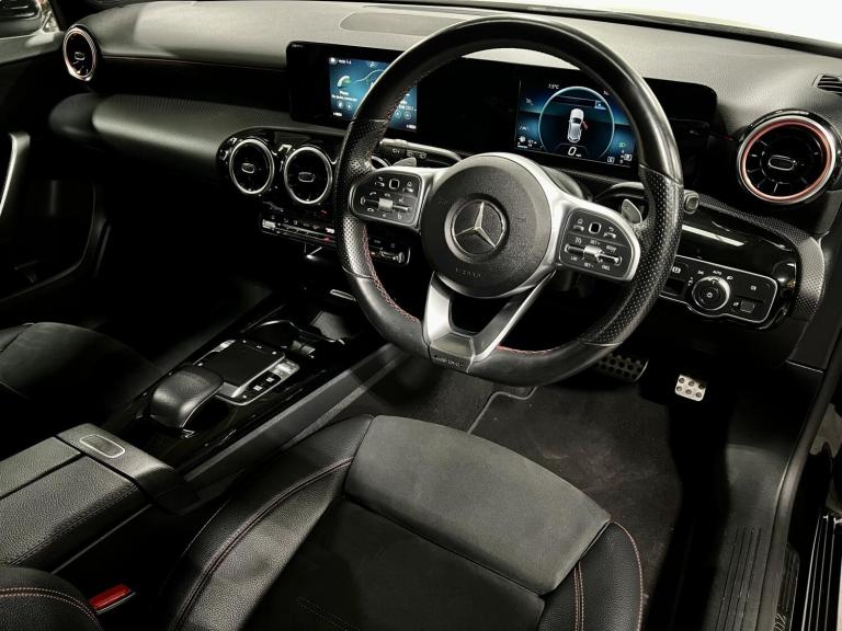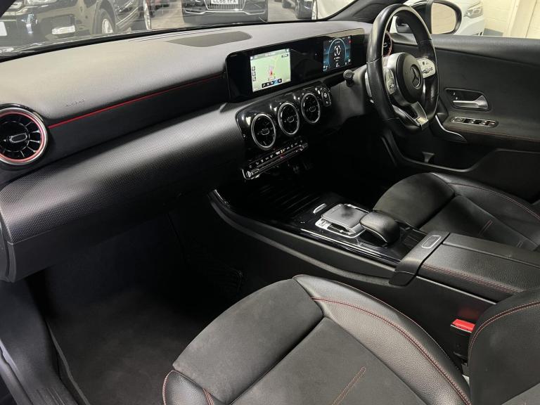 Get ready to elevate your driving experience with our stunning Mercedes-Benz A Class A200 AMG Line! This sleek hatchback combines luxury, performance, and cutting-edge technology, making it the perfect choice for those who demand excellence on the road. With a punchy 1.3-litre petrol engine that offers both power and efficiency, boasting a remarkable fuel consumption of 46.3 mpg, this is a smart choice for both your wallet and the environment. It is also ULEZ compliant, so you can drive through urban areas with peace of mind. This 2019 model, with only 41,000 miles on the clock and a full service history, is ready to hit the road with you behind the wheel. Externally, the Cosmos Black metallic enhances the vehicle's sporty aesthetic and looks excellent with rear privacy glass, plus the 18' AMG Line alloy wheels. Step inside, and you’ll be enveloped in the luxurious part leather and suede upholstery in black with red contrast stitching. This combination not only elevates the interior aesthetics but also offers exceptional comfort and support for all passengers. The high-quality materials are designed to withstand the rigours of daily use while providing a touch of sporty elegance that perfectly matches the AMG Line’s performance pedigree. With five doors and seating for five, this hatchback is perfect for both everyday commutes and weekend getaways. The automatic transmission and front-wheel drive ensure a smooth and responsive driving experience, making it a joy to navigate through city streets or open highways. With two keys and an extended warranty, you can drive with confidence, knowing that you’re covered for the road ahead. The car is in excellent condition and has been well looked after both cosmetically and mechanically. This will have 12 months MOT included in the sale. If you’re looking for a vehicle that combines style, performance, and practicality, the Mercedes-Benz A Class 1.3 A200 AMG Line is the perfect choice for you. Experience the thrill of driving a car that not only meets your needs but exceeds your expectations!