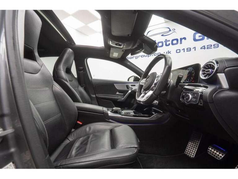 AMG Style Package,AMG Night Package,AMG Advanced Navigation Package,Driving Assistance Package,Advanced Connectivity Package,Leather - Black, 18in Alloy Wheels - AMG 5 Twin Spoke Design - Bi-Colour Finish, ABS - Anti-Lock Braking System with BAS - Brake Assist, Active Bonnet - Pedestrian Safety Measure which Detects an Impact and Raises Bonnet by 65mm, Active Brake ASSIST, Active Lane Keeping Assist, Adaptive Brake Assist with Hold Function and Hill Start Assist, Adaptive Brake Lights, Air Conditioning - THERMOTRONIC Luxury Automatic Climate Control - Two-Zone with Display, Air Vents with Surround and Cruciform Nozzle in Silver Chrome, Airbag - Kneebag for Driver, Airbags - Dual Stage - Driver and Front Passenger, Airbags - Head and Sidebags - Driver and Front Passenger, Airbags - Windowbags for Driver and Front Passenger, Alarm System with Immobiliser and Interior Protection - Thatcham Category 1, AMG Bodystyling - Front and Rear Apron and Side Skirts, AMG Radiator Grille with Twin Blade Lamella, AMG Suspension, ATTENTION Assist, Automatic Child Seat Recognition Sensor, Beltline Strips - Chrome, Bodystyling - Side Skirts - Body-Coloured, Brake Calipers - Mercedes-Benz Lettering on Front, Brake-Pad Wear Warning Indicator, Brushed Stainless Steel Sports Pedals with Rubber Studs, Bumpers - Body Coloured, Centre Armrest - Front with Stowage, Childproof Locks - Manually Operated for Rear Doors and Electrically Operated for Rear Power Windows, Crash-Responsive Emergency Lighting, Cruise Control with Limiter, Cup Holder - Double - Front, DAB Digital Radio Tuner, Digital Instrument Cluster with Three AMG Display Styles and AMG Menu, Direct Steer Speed-Sensitive Power Steering, Door Handles - Body Coloured with a Chrome Accent, Door Mirrors - Electrically Adjustable and Heated with Integrated LED Indicators, Dual Bluetooth Interface - 2 USB Ports - Type C, Dynamic Select with a Choice of Driving Modes - Comfort-Sport-Sport Plus-Slippery and Individual, Electric Parking Brake, Electric Windows - 4, ESP - Electronic Stability Programme with ASR - Acceleration Skid Control, ESP Curve Dynamic Assist, Exhaust System - Two Round Tailpipes Attached to the Rear Apron, First Aid Kit and Warning Triangle, Floor Mats - Red Stitched Edging - AMG Lettering, Footwell Lights in Front, Front Door Sills with Mercedes-Benz Lettering, Glass - Rear Windscreen - Heated with Timer Control, Glove Compartment - Illuminated, Hard-Disk Navigation, Headlamp Assist - Automatic Headlamp Activation, Hey Mercedes - Voice Activation, High Level Third Brake Light - LED, Instrument Cluster - Fluid Level Warning Indicator for Fuel - Oil - Coolant and Washer Fluid, Instrument Cluster - Outside Temperature Display, Instrument Cluster - Service Indicator ASSYST, Instrument Cluster - Trip Computer in Multi-Function Display with Current Fuel Consumption Indicator, Interior Lighting - Cup Holder - Stowage Compartment Lighting, Interior Lighting - Handle Recess - Closing Handle - Front-Rear-Left-Right, Interior Lighting - Oddments Tray, Interior Lighting - Reading Lamp in Rear in Support Plate - Rear-Left-Right, Interior Lighting - Reading Lamps - Front-Left-Right - Console Downlighter, Interior Lighting - Signal and Ambient Lamp, Interior Lighting - Signal Exit Lamp - Front-Left-Right, Interior Lighting - Touchpad, Interior Lighting - Vanity Lights - Front-Left-Right, ISOFIX and Top-Tether Child Seat Fixing Points in Rear - Two Outer Seats, KEYLESS-GO Starting Function, LED High Performance Headlamps with Integrated LED Daytime Running Lights, LED Tail Lights, Light Failure Indicator, Live Traffic Information, Luggage Compartment Cover, MBUX Multimedia System, Mercedes Me Connect - Standard Services, Pre-Installation for Mercedes-Benz Link, Premium Plus Package, Radio Aerial Roof Spoiler, Rain-Sensing Windscreen Wipers with Two Sensitivity Settings, Rear Fog Light, Rear Windscreen Wiper, Remote Central Locking and Crash Sensor with Emergency Opening Function, Rever.This Mercedes Benz A Class A35 AMG Premium Plus boasts exceptionally low mileage for its year, having covered just 39,680 miles. This Euro 6 compliant model features a powerful 2.0L petrol engine paired with a four wheel drive drivetrain, offering dynamic performance. It comes equipped with the desirable AMG Style Package, AMG Advanced Navigation Package including a Head Up Display, and the AMG Night Package. The Premium Plus Package further enhances the experience with a Burmester sound system, LED headlights, keyless entry, an opening panoramic sunroof, front and rear parking sensors, heated and memory seats, and dual Bluetooth interface with two USB Type C ports.The A35 AMG variant stands out with its impressive acceleration, achieving 0-62mph in a swift 4.7 seconds, demonstrating its performance capabilities. This acceleration figure indicates a superior driving experience compared to many similar vehicles. Additionally, the large boot space offers practicality for everyday use and longer