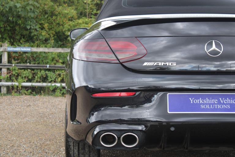 OVER 200 VEHICLES IN GROUP STOCK. Finished in Obsidian Black metallic with black leather and dinamica interior. Features include 12.3” digital instrument cluster, 19” AMG multispoke alloy wheels finished in gloss black, Air Scarf neck-level heating system, Air Cap wind deflector and draught-stop, Apple CarPlay and Android Auto, Comand satellite navigation, front and rear park distance control with rear view camera, heated front sport seats with electric adjustment, digital dual zone climate control with automatic air conditioning, bluetooth connectivity with media streaming, DAB digital radio, Multibeam LED headlights, rain sensor, cruise control, AMG performance exhaust system, AMG ride control sports suspension, dynamic select, traffic sign assist, electric folding exterior mirrors, privacy glass, keyless start, wireless phone charging, high gloss black with brushed aluminium door trims, red contrast stitching, illuminated AMG door sills, ghost immobiliser, voice control, AMG leather steering wheel with paddleshift, automatic transmission plus much more standard specification. This C43 AMG Cabriolet (Premium) is offered in excellent condition having covered 49700 miles from new. The car comes complete with a service history. GOOGLE YORKSHIRE VEHICLE SOLUTIONS FOR OUR CUSTOMER REVIEWS. PLEASE CALL OR E-MAIL FOR FURTHER DETAILS OR TO ARRANGE A PERSONALISED VIDEO OR VIEWING.