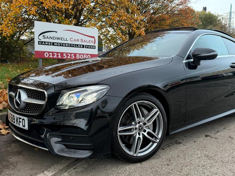 2019 69 REG MERCEDES-BENZ E CLASS E220d AMG LINE 2DR 9G-TRONIC, EURO 6, ULEZ COMPLIANT, 55,000 MILES, FULL SERVICE HISTORY.1 FORMER KEEPER, FULL SERVICE HISTORY 6 SERVICES TO 55K MILES, HPI CLEAR, 2 KEYS, PREMIUM PLUS PACK, VIRTUAL COCKPIT, PANORAMIC GLASS SUNROOF, 360 CAMERAS, BURMESTER SOUND.^^***** CARS, VANS AND MOTORCYCLES TAKEN IN PART EXCHANGE *****^^^ ALL VEHICLES ARE HPI CHECKED AND HPI CLEAR, PART EXCHANGE AVAILABLE, FINANCE AVAILABLE, VEHICLES ARE SUPPLIED WITH A FULLY COMPREHENSIVE PARTS AND LABOUR WARRANTY, ALL VEHICLES UNDERGO A PROFESSIONAL VALET, VEHICLES CAN BE DRIVEN AWAY ON THE SAME DAY, DRIVEAWAY INSURANCE CAN BE ARRANGED, DELIVERY SERVICE AVAILABLE, FREE COLLECTION FROM LOCAL AIRPORTS OR TRAIN STATIONS, LOCATED IN BIRMINGHAM, POST CODE B70 9ET, LOCAL MOTORWAYS ARE M5 & M6, OPEN 7 DAYS A WEEK, 10am - 7pm, VIEWINGS PRIOR TO APPOINTMENT ONLY, INDOOR SHOWROOM, FOR MORE INFORMATION PLEASE CALL ON 0121 525 8080 OR WHATSAPP US ON 07985470494.