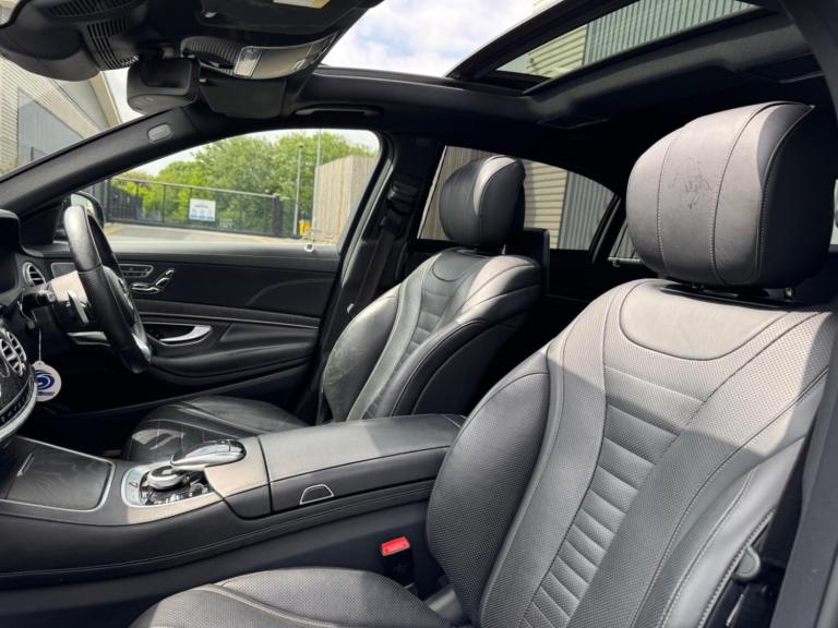 With a full dealership service history, this 2019 Mercedes-Benz S560Le V6 Grand Edition S Class is a superb example of German automotive engineering. This Grand Edition trim features a 3.0L Petrol Plug-in Hybrid engine and meets Euro 6 emission standards. The vehicle boasts several features, including a Rear Luxury Lounge Package for enhanced passenger comfort and a Wireless Charging System in the front for mobile devices. The MULTIBEAM LED headlights with ULTRA RANGE Highbeam provide exceptional visibility, and the Thermotronic Automatic Climate Control offers three climate modes for personalised comfort. Heated rear seats add an extra touch of luxury for passengers.The S560Le V6 Grand Edition accelerates from 0-62mph in just 5.0 seconds. This rapid acceleration demonstrates how this vehicle offers a superior driving experience compared to its competitors. The combination of performance and luxury makes this Mercedes-Benz S Class a compelling choice for discerning drivers.