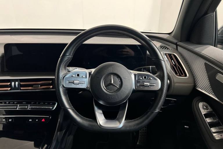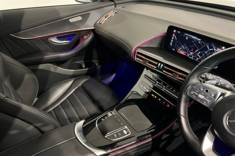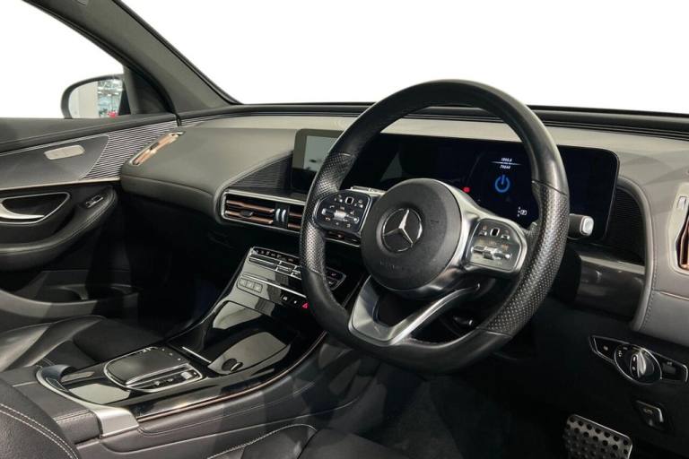 This 2020 Mercedes Benz EQC 400 AMG Line boasts an MOT valid until October 2026, offering peace of mind for the coming years. As an all electric vehicle, it features a substantial 88 kWh battery, providing a maximum range of 245 miles when new. This Four Wheel Drive model, in its AMG Line trim, combines sophisticated styling with advanced technology. Notable features include the KEYLESS GO Comfort Package for effortless access, Blind Spot Assist for enhanced safety, and heated front seats for added comfort. The MULTIBEAM LED headlights ensure excellent visibility, while the Mercedes Benz Sound System delivers an immersive audio experience. Experience the impressive performance of this EQC, with its rapid 0-60mph acceleration in just 5.1 seconds, demonstrating its dynamic capabilities. Charging is convenient, taking approximately 12 hours and 13 minutes for a full charge at home using a 7kW charger, and can reach 80% charge in as little as 45 minutes at a public charging station. These attributes highlight how this Mercedes Benz EQC offers a superior driving experience compared to other vehicles in its class, blending electric efficiency with luxury and performance. Lifetime warranty available on this car, plus a £1,000 finance contribution when you part exchange. Voted UK Car Supermarket of the Year two years running, we offer 0% finance, part exchange, and lifetime warranties across our entire range. Every car is thoroughly inspected before sale and comes with a full history check, so you can buy with complete peace of mind. Buy with confidence on our best finance rates. Proud winners of the CarGurus Top-Rated Dealer 2022 and the MotoNovo Extra Mile Award. .110kW DC On-board Charger, 12V Socket in Load Area, 20in Alloy Wheels - AMG Multi-Spoke Design - Painted Black with High-Sheen Finish, 7.4kW On-board Charger, ABS - Anti-Lock Braking System, Active Brake Assist, Active Lane Departure Warning, Airbags - Driver and Front Passenger, Aluminium - Running Boards, Ambient Lighting, AMG Brushed Stainless Steel Sports Pedals with Black Rubber Studs, AMG-Specifc Rear Apron with Visible Air Outlets, AMG-Specific Black Panel Radiator Grille in a Twin-Blade Design and Surround in High-Gloss Black, Badge on the Wing in High-Gloss Black with Chrome Stripes and Blue EQC Lettering, Blind Spot Assist, CCS-2 Connector - Combined Charging System - Compatible with AC and DC, Charging Cable for Wallbox and Public Charging Stations - Type 2 Mode 3 - 4m, Comfort Suspension - including Self-Levelling Rear Air Suspension, Cruise Control, Dashboard in ARTICO, Digital Radio, Door Mirrors - High Gloss Black, Dynamic Select, EASY-PACK Electric Tailgate, Electric Windows - Front and Rear, EQ Navigation Services, Floor Mats - AMG, Front and Rear LED Light Bands, Hard-Disk Navigation, Heat and Noise Insulating Acoustic Glass, Heated Front Seats, Interior Lighting Package, IONITY 1 Year, KEYLESS-GO Comfort Package, Leather - Black, Live Traffic Information, MBUX - Mercedes-Benz User Experience - Infotainment System, MBUX Multimedia System with 10.25-inch Instrument Display and 10.25-inch Media Display with Touchscreen, Mercedes Me Charge (3 Year Subscription From New), Mercedes Me Connect - Vehicle Monitoring, Mercedes Me Connect - Vehicle Set-Up, Mercedes-Benz Sound System, Mirror Package, MULTIBEAM LED Headlights, Obsidian Black, Parking Package with Reversing Camera, Power Assisted Steering, Privacy Glass, Roof Lining - Black Fabric, Seat Comfort Package, Seats - AMG Sports in Leather, Seats - Rear Split Folding 40-20-40, Steering Wheel - Flat-Bottomed Multifunction Steering Wheel in Nappa Leather, Stowage Package, Summer Tyres, TIREFIT, Trim - Anthracite Carbon-Fibre Look Trim with High Gloss Black Centre Console, URBAN GUARD Vehicle Protection