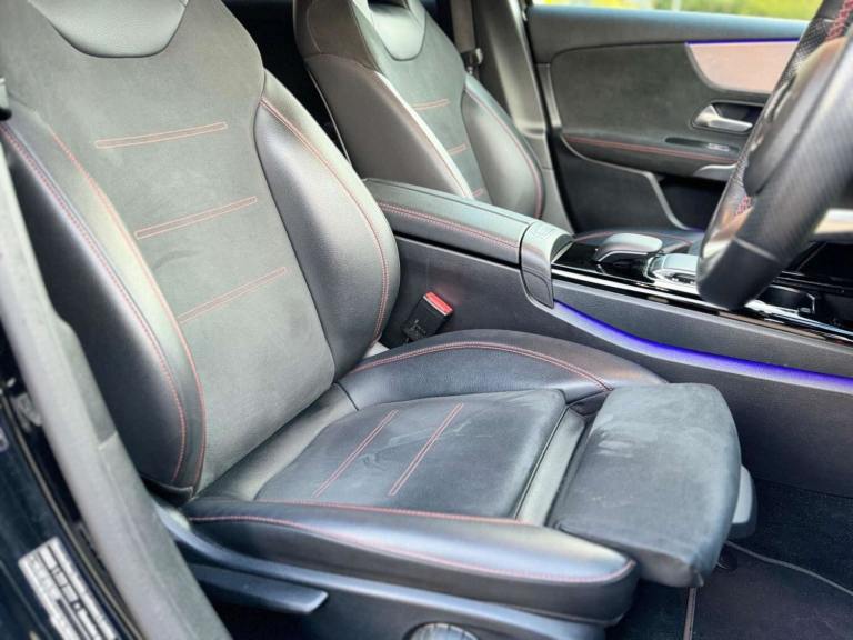 Introducing this pristine Mercedes-Benz A200 1.3 AMG Line Premium DCT Hatchback, finished in a stunning black color with only 30,381 miles on the clock. This 2020 registered vehicle has had 2 careful owners and comes with a full service history, including 3 services, the most recent one at 27,623 miles. Equipped with an auto clutch transmission, it offers a smooth and responsive driving experience.This car is packed with highly desirable features, including the sought-after Premium Pack, ambient lighting, navigation, parking sensors, climate control, half leather trim, 18"" alloy wheels, and privacy glass, ensuring that every journey is both luxurious and comfortable. SKV Motors provide a warranty with all of our vehicles, ensuring peace of mind. All our vehicles are thoroughly inspected and will come with a fresh 12-month MOT. We also offer flexible finance options starting from 0% deposit. Call us today and see what deal we can offer!
