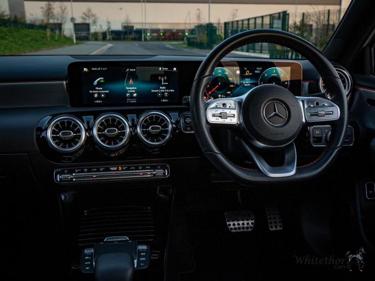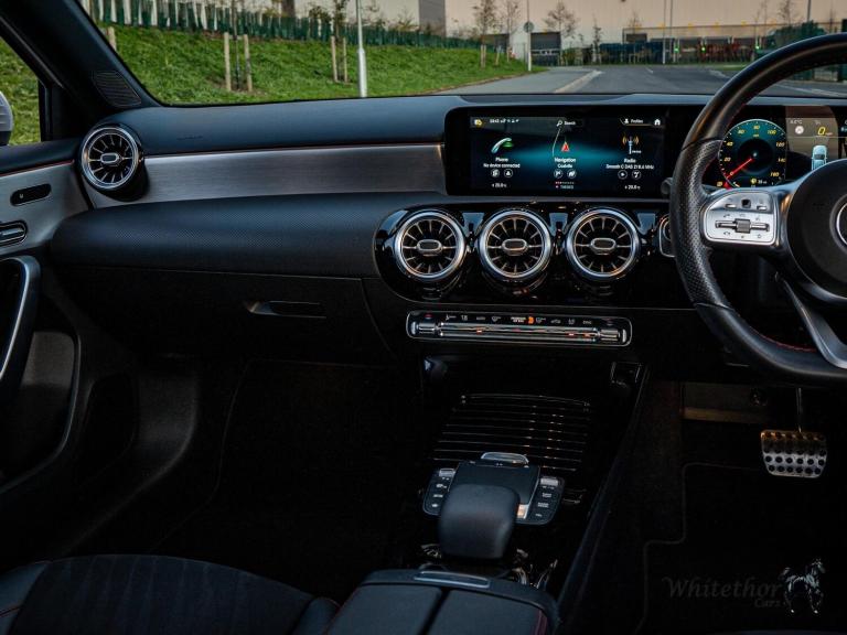 FREE DELIVERY WITHIN 200 MILES – Here we have a stunning Mercedes A200d AMG Line Premium Plus 2 finished in White. This is a top spec example being the Premium Plus 2 and boasts a must have specification, this includes: Panoramic Sunroof -- Rear View Camera -- Electric Memory Heated Seats -- Keyless Entry and Start -- MULTIBEAM LEDs with Adaptive Highbeam Assist Plus -- 10.25-inch instrument cluster -- 64-colour Ambient Lighting -- Smartphone Integration -- and more. This car has had 4 services in total (2 Mercedes, 2 Independent) last carried out at 30,500 miles. The MOT expires August 2026. 3 Month £2000 Claim Limit Warranty is included with the sale but the option to upgrade to a 12M, 24M, & 36M £5000 Claim Limit Nation Wide Premium Autoguard Warranty with Breakdown Cover is available. Multiple Finance Options, Competitive Part Exchange Prices. All Cars Are HPI, MotorCheck & Experian Clear. Further Vehicle Delivery Options Also Available. All Rights Reserved - Whitethor cars exercise all reasonable care and skill in providing you with vehicle information and data. The specification is attained through HPI, Experian & Autotrader VRM. Options Sold as packs may be shown individually, spec check is a guide so please contact us or physically verify any info that is crucial.