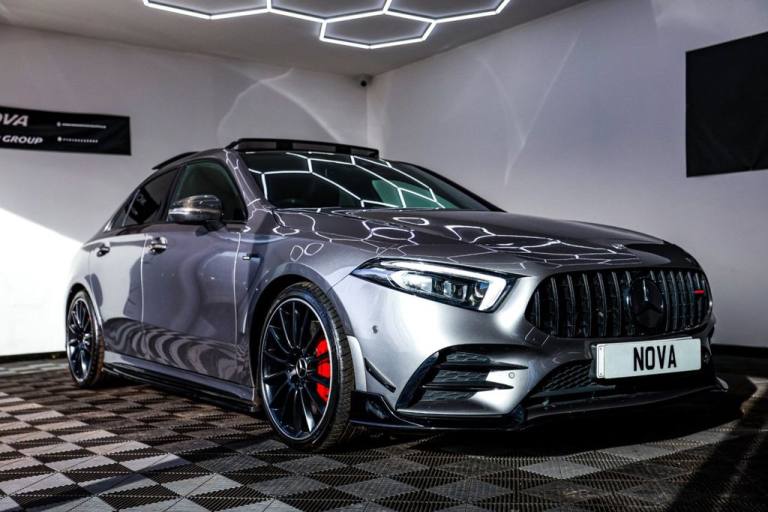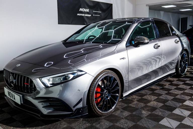 This 2020 Mercedes Benz A Class A35 AMG Premium Plus boasts exceptionally low mileage for its age, having covered just 32835 miles. This Euro 6 compliant, four wheel drive model is powered by a potent 2.0 litre petrol engine and comes with a clear vehicle history check. Notable features include the striking AMG Night Package, advanced MULTIBEAM LED Headlights with Adaptive Highbeam Assist Plus, and luxurious Heated Front Seats. For added comfort and convenience, it also offers Electrically Adjustable Front Memory Seats with Lumbar Support and an impressive Burmester Surround Sound System. Experience exhilarating performance with this A35 AMG, capable of accelerating from 0 to 60mph in a remarkable 4.8 seconds. This impressive acceleration figure highlights how this vehicle offers a more dynamic driving experience compared to many others in its class. The combination of its AMG trim, advanced technology, and performance credentials makes this Mercedes Benz A Class a truly compelling proposition for any discerning driver. Nova Motor Group is a prestige car dealership run by car enthusiasts with a passion for motoring and a commitment to excellent customer service! All of our vehicles come with 3 months warranty (where applicable) supplied by AutoProtect, with options to extend this up to 3 years for added peace of mind. We also offer optional products to protect your cars interior and exterior with Williams F1 Racing Team Ceramic Coating, providing a lifetime guarantee on treated surfaces. We welcome part exchanges regardless of age or mileage, A short inspection is all we need. Our aim is always to provide the fairest and most accurate price for your vehicle. Test drives are welcomed with open arms, just remember to bring your drivers licence for insurance purposes. As a broker, we offer flexible finance options through our panel of trusted lenders (rates subject to your credit profile). Finance checks can be performed in-house or online, from the comfort of your home..Heated Front Seats, MBUX Multimedia System, Burmester Surround Sound System, Cruise Control with Limiter, Exhaust System Featuring Automatically-C, Mountain Grey, Leather - Black, 19in Alloy Wheels - AMG Multi-Spoke - Painted in Matt Black with a High-Sheen Finish, ABS - Anti-Lock Braking System with BAS - Brake Assist, AMG Aerodynamics Package, AMG Bodystyling - Front and Rear Apron, AMG Night Package, AMG Radiator Grille with Twin Blade Lamella and AMG Lettering, AMG Suspension, ATTENTION Assist, Active Bonnet - Pedestrian Safety Measure which Detects an Impact and Raises Bonnet by 65mm, Active Brake ASSIST, Active Lane Keeping Assist, Adaptive Brake Assist with Hold Function and Hill Start Assist, Adaptive Brake Lights, Air Conditioning - THERMOTRONIC Luxury Automatic Climate Control - Two-Zone with Display, Air Vents - Black with Silver Chrome Elements, Airbag - Kneebag for Driver, Airbags - Dual Stage - Driver and Front Passenger, Airbags - Windowbags for Driver and Front Passenger, Alarm System with Immobiliser and Interior Protection - Thatcham Category 1, Automatic Child Seat Recognition Sensor, Beltline Strips - High Gloss Black, Bodystyling - Side Skirts - Body-Coloured, Brake Calipers with AMG Lettering, Brake-Pad Wear Warning Indicator, Brushed Stainless Steel Sports Pedals with Rubber Studs, Bumpers - Body Coloured, Burmester Surround Sound System, Centre Armrest - Front with Stowage, Childproof Locks - Manually Operated for Rear Doors and Electrically Operated for Rear Power Windows, Crash-Responsive Emergency Lighting, Cruise Control with Limiter, DAB Digital Radio Tuner, Digital Instrument Cluster with Three AMG Display Styles and AMG Menu, Direct Steer Speed-Sensitive Power Steering, Door Handles - Body Coloured, Door Mirrors - Electrically Adjustable and Heated with Integrated LED Indicators, Dual Bluetooth Interfaces, Dynamic Select with a Choice of Driving Modes - Comfort-Sport-Sport Plus-Slippery and Individual, ESP - Electronic Stability Programme with ASR - Acceleration Skid Control, ESP Curve Dynamic Assist, Electric Parking Brake, Electric Windows - 4, Exhaust System - AMG Sports Exhaust System with Two Round Tailpipes Attached to the Rear Apron, Exhaust System Featuring Automatically-Controlled Exhaust Flap, First Aid Kit and Warning Triangle, Floor Mats with Stitched Edging and AMG Lettering, Front Apron with Flics as Air Deflector Elements on the Outer Air Intakes, Front Splitter and Trim Elements on the Louvres in the Outer Air