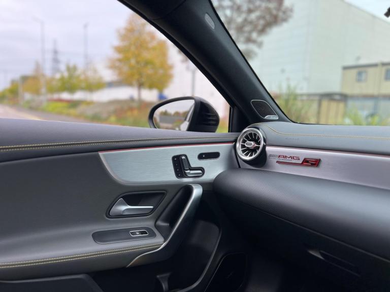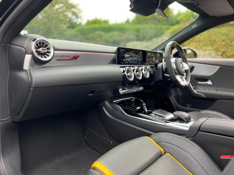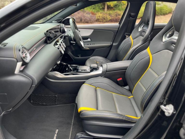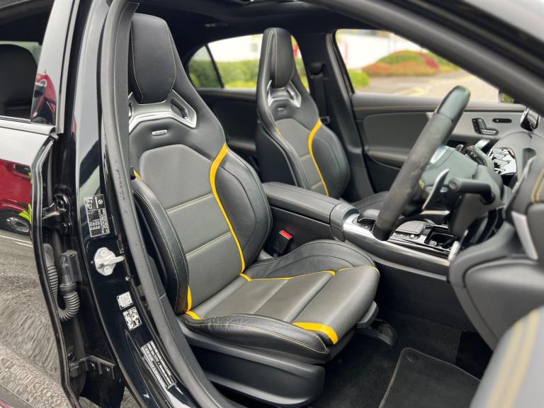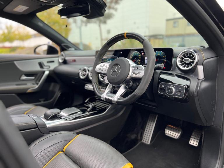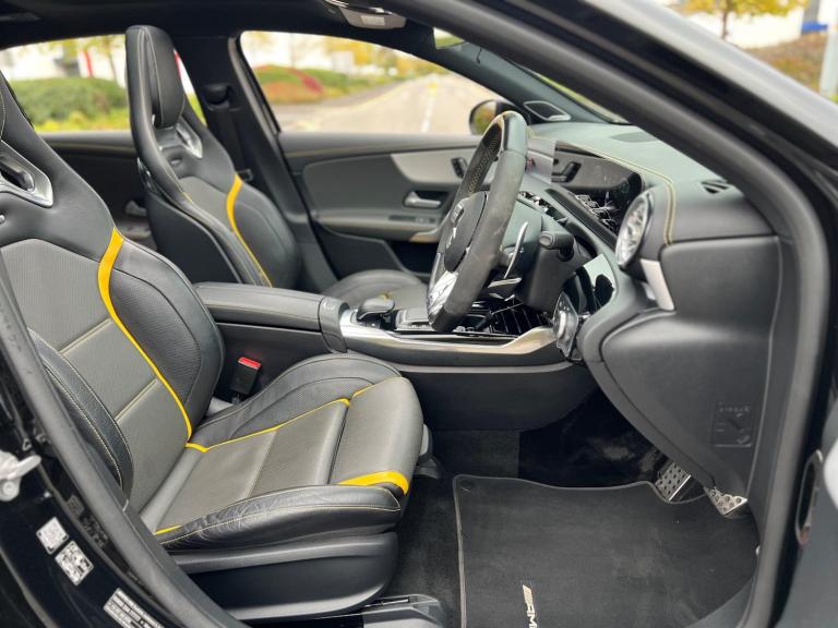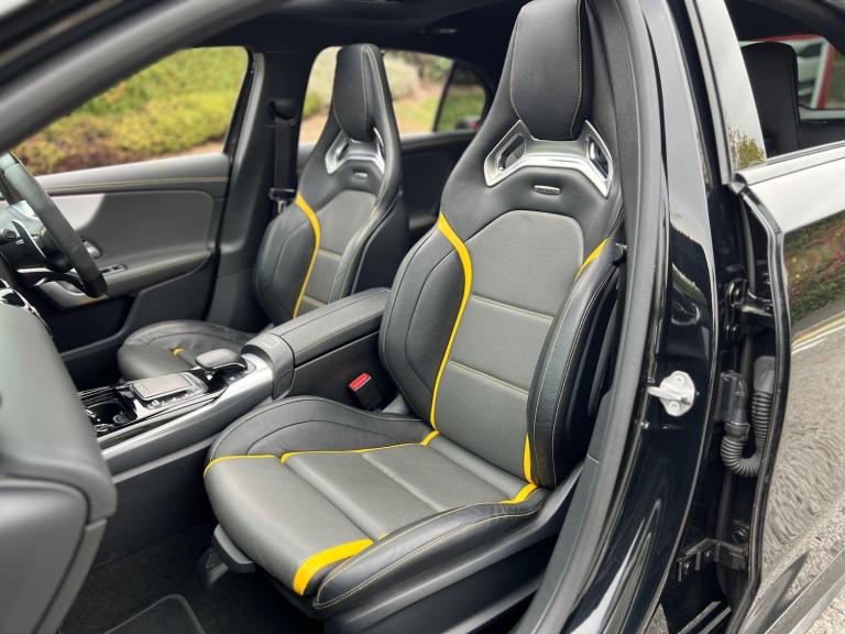 2020 Mercedes-Benz A45S AMG 4Matic 2.0 petrol finished in black. 38,000 warranted miles on the clock. MOT til 24th January 2026. Full service history available. Car drives well with no mechanical faults. Full V5 available. Comes with a huge spec including; alloy wheels, leather steering wheel, multi-functional steering wheel, cruise control, on-board computer, Satellite Navigation, Bluetooth, Apple CarPlay, tilt & slide panoramic sunroof, reverse camera, driving modes, automatic headlights, virtual cockpit, bucket seats, heated electric seats, Radio DAB/FM, electric windows, central locking, AC/Climate control, electric folding mirrors, TPMS and many more. Nationwide Delivery Available. P/X Welcome. HPI Clear. 2 Keys. ULEZ Compliant. Any questions don't hesitate to contact us on 07470 017582. Whatsapp available as well