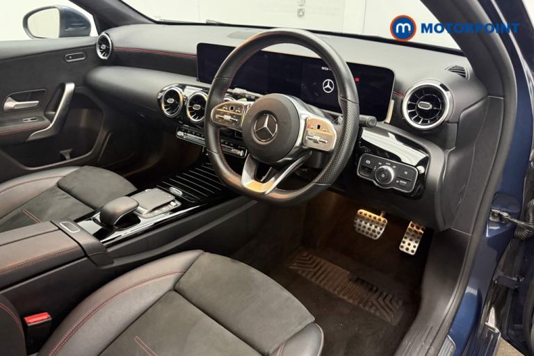 Save £10486.00 off the new list price on our 2020 Mercedes-Benz A Class in Blue. With only 25332 miles on the clock, this A Class Amg Line comes with 3 months warranty and boasts a number of features including SatNav, Reverse Parking Camera, Heated Seats, Bluetooth, Cruise Control, Climate Control, Half Leather, DAB, Alloys, Electric Mirrors, 18"" Wheels, Parking Sensors Front and Rear, Privacy Glass and more.At Motorpoint, we stock over 1,000 new cars every week with flexible finance options to suit you. We have a huge range of nearly new, low mileage cars from nearly all major manufacturers for you to choose from. All cars come with a minimum 3 month warranty and are tested to the Motorpoint Quality Standard to give you peace of mind. Every car is available to buy online or in store, and can be delivered straight to your nearest Motorpoint branch. You can reserve online today or if you would like to book a test drive or find out more about this car, please call our team and quote 1635999.