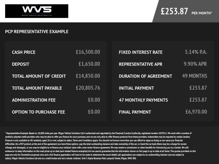 Wigan Vehicle Solutions are a family Run Company with 20 Plus years experience in the motor Trade. We Hand Pick all our Vehicles to ensure quality and customer satisfaction. We specialise in Home Delivery which allows you to have peace of mind when buying your vehicle as we always go the extra mile to ensure that your vehicle fits your exact needs. We ensure that all our vehicles are valeted and have a pre delivery inspection. As we aim to make your buying experience as smooth as possible, we will pick up your part exchange which will save you time and money. We offer a range of services like Finance, Home Delivery and Part Exchange so you dont have to spend your hard-earned time and money finding that elsewhere. Our reviews and feedback tell us that our customers love the way we do business, so if you want to purchase online, or the comfort of our showroom WVS is the retailer to take care of your next car needs..