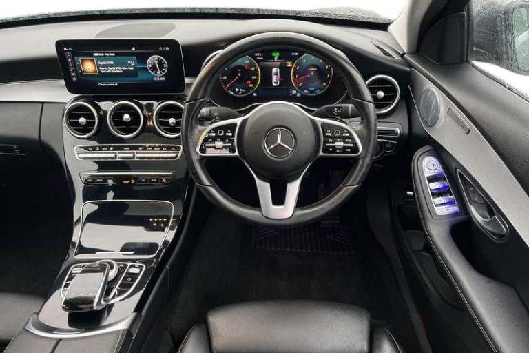 12.3 digital instrument cluster display, 360 degree parking camera, Active park assist with parktronic system, Attention assist, Bluetooth system, Collision prevention assist plus, Comand Online HDD Nav with media interface, radio/CD/DVD/MP3, 10.25 screen, linguatronic voice control, DYNAMIC SELECT with a choice of driving modes (ECO, Comfort, Sport, Sport+ and Individual), Multi function trip computer, Outside temperature gauge, Remote boot release, Service indicator (ASSYST PLUS), Smartphone integration with Apple CarPlay and Android auto, Wireless charging, Adaptive brake lights, Aerial in rear window, Body coloured bumpers, Body coloured door mirrors, Electric front sliding and fixed rear panoramic glass sunroof, Electric windows one touch open/close, Electrically adjustable and heated door mirrors, Green tinted glass, Heated windscreen washers, LED daytime running lights, LED Indicators, LED tail lights, LED third brake light, Multi beam LED headlights, Radiator grille with integral star and 2 louvres in matt iridium silver with chrome trim, Rain sensor windscreen wipers, Side windows surround in polished aluminium, 2 cupholders in front centre console, 3 spoke leather multi function steering wheel with silver chrome trim, 40:20:40 split folding rear seats, Artico man-made leather upholstery, Auto Mercedes-Benz child seat recognition sensor, Black floor mats, Dual zone automatic climate control, Electric front seat height adjustment, Front and rear head restraints,