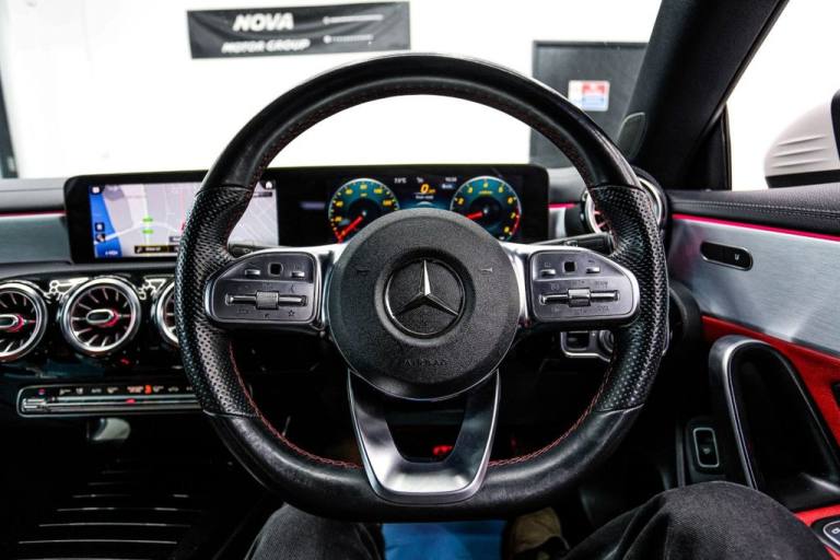 This 2020 Mercedes Benz CLA180 AMG Line (Premium 2) offers a sophisticated driving experience. Powered by a 1.3 litre petrol engine and meeting Euro 6 emissions standards, this model combines style with efficiency. The AMG Line trim enhances its sporty appeal, while the THERMOTRONIC luxury automatic climate control with a two zone system and display ensures a comfortable cabin environment for all occupants. With a fuel economy of 46 miles per gallon, this CLA180 demonstrates impressive efficiency, a highlight that sets it apart from many similar vehicles. Furthermore, its low CO2 emissions contribute to a more environmentally conscious drive. This Mercedes Benz CLA represents a well equipped and economical choice for those seeking premium quality. Optional equipment includes: Light longitudinal-grain aluminium,Polar White gloss ,Two-tone Classic Red/Black leather. Nova Motor Group is a prestige car dealership run by car enthusiasts with a passion for motoring and a commitment to excellent customer service! All of our vehicles come with 3 months warranty (where applicable) supplied by AutoProtect, with options to extend this up to 3 years for added peace of mind. We also offer optional products to protect your cars interior and exterior with Williams F1 Racing Team Ceramic Coating, providing a lifetime guarantee on treated surfaces. We welcome part exchanges regardless of age or mileage, A short inspection is all we need. Our aim is always to provide the fairest and most accurate price for your vehicle. Test drives are welcomed with open arms, just remember to bring your drivers licence for insurance purposes. As a broker, we offer flexible finance options through our panel of trusted lenders (rates subject to your credit profile). Finance checks can be performed in-house or online, from the comfort of your home..Navigation Services, Mercedes-Benz Sound System - 225 W, Parking Package, Active Lane Keeping Assist, Cruise Control with Limiter, 18in Alloy Wheels - AMG 5-Twin-Spoke Design - Painted Titanium Grey with a High-Sheen Finish, ABS - Anti-Lock Braking System with BAS - Brake Assist, AMG Bodystyling, ATTENTION Assist - Monitors Steering Behaviour and can Help Alert to Long Journey Fatigue, Active Bonnet - Pedestrian Safety Measure which Detects an Impact and Raises Bonnet by 65mm, Active Brake ASSIST, Active Lane Keeping Assist, Adaptive Brake Lights, Air Conditioning - Air Vents with Surround in Silver Chrome, Air Conditioning - THERMOTRONIC Luxury Automatic Climate Control - Two-Zone with Display, Airbag - Kneebag for Driver, Airbags - Dual-Stage - Driver and Front Passenger, Airbags - Head and Sidebags - Driver and Front Passenger, Airbags - Windowbags for Driver and Front Passenger, Alarm System with Immobiliser and Interior Protection - Thatcham Category 1, Automatic Child Seat Recognition Sensor - Pressure Sensor, Beltline Strips - Chrome, Bonnet with Power Domes, Brake Calipers - Mercedes-Benz Lettering on Front, Brake-Pad Wear Warning Indicator, Braking - Adaptive Brake Assist with HOLD Function and Hill Start Assist, Brushed Stainless Steel Sports Pedals with Rubber Studs, Bumpers - Body Coloured, Centre Armrest - Front with Stowage, Childproof Locks - Manually Operated for Rear Doors and Electrically Operated for Rear Power Windows, Chrome Weather Strip, Crash-Responsive Emergency Lighting, Cruise Control with Limiter, DAB Digital Radio Tuner, Diamond Radiator Grille with Pins in Chrome - Silver-Painted Louvre and Insert in Chrome, Direct-Steer Speed Sensitive Steering, Door Handles - Body Coloured, Door Mirrors - Electrically Adjustable and Heated with Integrated LED Indicators, Door Sills - Front Door Sill Panels with Mercedes-Benz Lettering - Illuminated, Dual Bluetooth Interfaces, Dynamic Select with a Choice of Driving Modes - ECO-Comfort-Sport and Individual, ESP - Electronic Stability Programme with ASR - Acceleration Skid Control, ESP Curve Dynamic Assist, Electric Parking Brake, Exhaust System - 2 Visible Tailpipe Trim Elements and Rear Apron with Trim in Chrome, First Aid Kit and Warning Triangle, Floor Mats with Stitched AMG Lettering, Glass - Rear Windscreen - Heated with Timer Control, Hard-Disk Navigation, Headlamp Assist - Automatic Headlamp Activation, Headlamps - LED High Performance with Integrated LED Daytime Running Lights, Heated