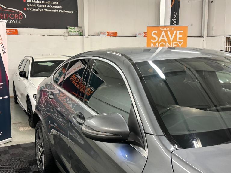 JUST ARRIVED AWAITING PREP PLEASE CALL TO REGISTER YOUR INTREST OR RESERVE ONLINE £99 DEPOSIT FULLY REFUNDABLE SUBJECT TO VIEW IMMACULATE EXAMPLE FACELIFT MODEL MERCEDES BENZ GLC CLASS 220D 2.0 AMG LINE EDITION COUPE 4M 9G DCT AUTO, EURO 6 IN THE MOST DESIRABLE COLOUR SELENITE GREY METALLIC, VEHICLE ENHANCEMENTS AVAILABLE UPON REQUEST AT EXTRA COST INCLUDING FULL BLACK PACK GT STYLING GLOSS BLACK ALLOYS PLEASE ENQUIRE AS WE DONT JUST SELL WE CAN ALSO ENHANCE YOUR VEHICLE AT YOUR REQUEST ALWAYS GOING THE EXTRA MILE, 1 OWNER FROM NEW SERVICE HISTORY PRE DELIVERY INSPECTION INCLUDING NEW SERVICE&MOT PRIOR TO SALE FOR TOTAL PEACE OF MIND, HIGHLY POPULAR AND RELIABLE VERY STYLISH AND SLEEK, LUXARY AT ITS BEST EVERYTHING YOU CAN ASK FOR, %100 TICKS ALL THE BOXES UPGRADES INCLUDE, REVCAM NAV HEATED SEATS, AMBIENT LIGHTING AMG INTERIOR L.E.D DAYTIME LIGHTS 19IN AMG ALLOYS AND MUCH MORE, HPI CLEAR NATIONWIDE WARRANTY £0 DEPOSIT LOW RATE FINANCE, DRIVE AWAY TODAY FROM £70 P/ WEEK FINANCE SPECIALIST CLICK AND COLLECT OR BUY ONLINE NATIONWIDE DELIVERY T&C APPLY OR DRIVE AWAY IN ONE HOUR,TRULY IN OUTSTANDING CONDITION, VIEWING ESSENTIAL,STUNNING EYE CATCHING LOOKS HIGHLY POPULAR AND ATTRACTIVE VERY PRACTICAL AND ECONOMICAL LOW RUNNING COSTS,DRIVE AROUND IN PURE COMFORT AND STYLE,ALL OF OUR CARS ARE SPECIALLY SOURCED AND WE STRIVE TO BE THE MOST COMPETITIVE AROUND WHEN COMPARED TO LIKE TO LIKE VEHICLES, COMES COMPLETE WITH 2 KEYS,Truly a Unique Opportunity At Exceptional Value At TopCarsTelford We Pride Ourselves in Only Selling Top Quality Cars That Are Fully inspected HPI Checked with report providing you with complete peace of mind guaranteed customer satisfaction viewing highly recommended you will not be disappointed,EXTENSIVE WARRANTY PACKAGES,BUILD YOUR OWN FINANCE PACKAGE APPLY DIRECTLY ON OUR WEBSITE, ALL MAJOR DEBIT/CREDIT CARDS ACCEPTED, indoor showroom, viewing available by appointment for any online enquires including our 5 Star verified customer review please visit our website WWW.TOPCARSTELFORD.CO.UK for more info