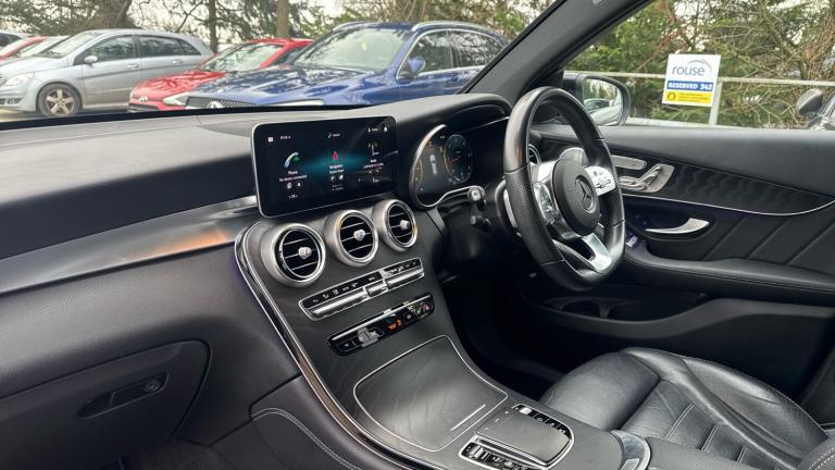 This 2020 Mercedes Benz GLC 300d AMG Line Premium Plus is a polished and highly capable SUV that blends everyday usability with genuine premium appeal. With two owners from new and last serviced in February 2026 it presents as a well cared for example of one of the most accomplished cars in its class.Practicality is a real strength. The GLC offers a spacious and flexible cabin with excellent rear legroom and a generous boot that is easy to access thanks to the Easy Pack tailgate and Hands Free Access. The panoramic sliding sunroof floods the interior with light making longer journeys feel more relaxed for all occupants. Four wheel drive traction ensures confident progress in all weather conditions while the smooth G Tronic automatic gearbox makes town driving effortless.Economy is impressive for a performance focused diesel SUV. The 245 ps engine delivers strong mid range pull while remaining refined and efficient on longer runs making it a sensible choice for both commuting and family travel.Comfort is where this Premium Plus model really shines. Black heated leather seats with memory provide excellent support while the Burmester surround sound system and Apple CarPlay turn every journey into an event. MBUX augmented reality satellite navigation is clear intuitive and genuinely helpful especially in busy urban environments. Wireless mobile phone charging keeps the cabin free of clutter while the 20 inch AMG alloy wheels and Obsidian Black metallic paint give the car real presence.Safety is comprehensive with LED headlamps excellent all round visibility and a 360 degree camera that makes parking simple and stress free. The elevated driving position and advanced driver assistance systems inspire confidence on every journey.Buy with confidence from Vertu Beaconsfield where every car is prepared by manufacturer trained technicians. This vehicle includes a three month complimentary warranty with the option to extend at extra cost for added peace of mind along with professional customer service from a trusted retailer..Air Conditioning, Climate Control, Metallic Paint, Cruise Control, Satellite Navigation, Alloy Wheels, Leather Seats, Heated Seats, DAB Radio, Bluetooth, Panoramic Roof, Parking Sensors, Stop Start, Low Mileage, USB, Park Assist, Sun Roof, Electric Seats, Memory Seats, Keyless Entry-Push Button Start, Apple-Android Play, Rear Camera, Electric Opening Tailgate, Auto Lights, Electric Folding Mirrors, Pre Crash Prevention, Rain Sensors& 4x4, AMG floor mats with edging and embroidered AMG lettering, Rear wiper, Electric windows one touch open/close, Rain sensor windscreen wipers, Privacy glass with dark glass from B pillar backwards, Tinted glass all round with single layer safety glass, Variable front intermittent wipers, Tinted rear windows, ASR, Electronic parking brake, Hill hold function, Brake calipers with Mercedes-Benz lettering + perforated brake discs, Adaptive Brake System with HOLD function and brake drying in the wet