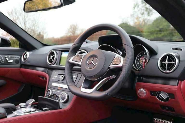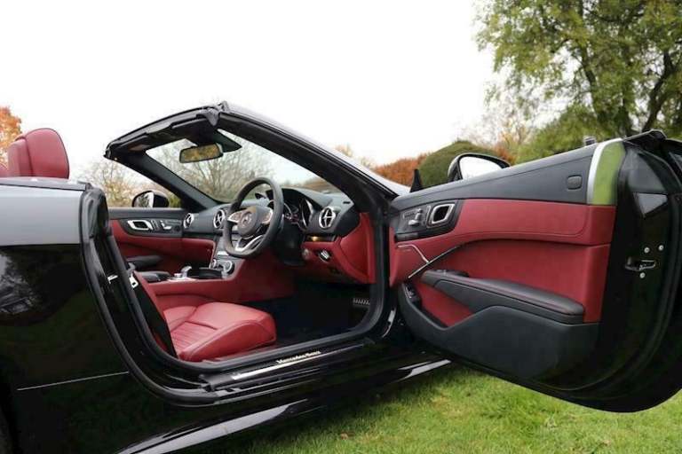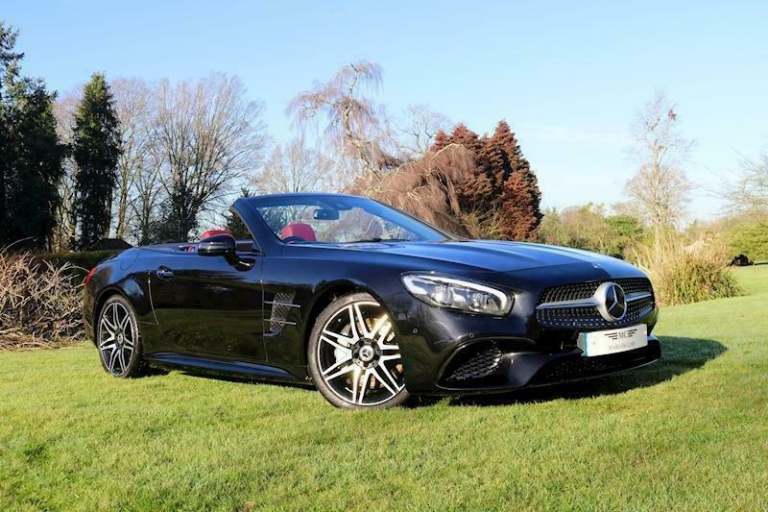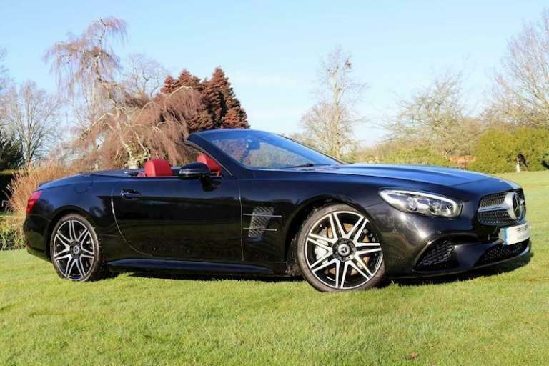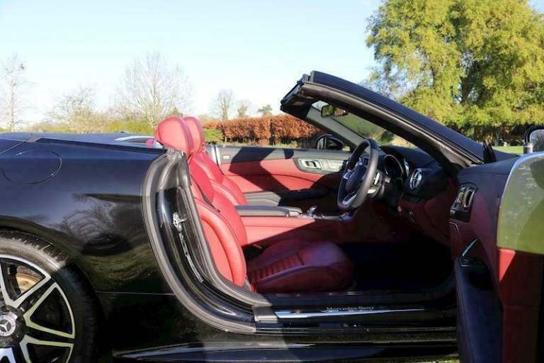 SL 400 V6 Grand edition AMG Package . only 2,700 miles . Cherished number S500 ADD for sale ...June 2020. Obsidian black metallic with bengal red nappa leather.Dynamic select. keyless go /entry.Adaptive high beam assist headlights.ambient lighting,air scalf,apple car [Website URL removed] sat nav. dvd player.electric wind deflector.heated seats.remote boot closing.reverse camera.panoramic roof.multibeam led.sport engine sound with button control ,smart phone intergration.eco stop start.magic vision control heated,multi function wheel.19" amg wheels.starguard leather protection treated. serviced 29/6/21 at 1,897 at MB Chelsea.