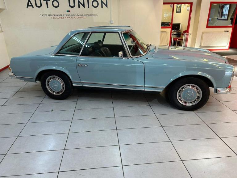 MERCEDES SL280 PAGODA £149,9951969 MERCEDES BENZ SL280 PAGODA AUTOMATIC.2778cc 6 CYLINDER SINGLE OVERHEAD CAM, FUEL INJECTED PETROL, PRODUCING 170 BHP!ONLY COVERED 94,050 miles from new.2 OWNERS FROM NEW AFTER BEING IMPORTED FROM USA IN 2021COMES WITH ORIGINAL OWNERS MANUAL, BOOK PACK AND BROCHURES.A FOLDER FULL OF INVOICES FOR THE RESTORATION AND RE-COMMISSIONING WORK CARRIED OUT SINCE BEING IMPORTED TOTALING OVER £40,000!ALSO COMES WITH THE COLOUR CODED HARD TOP AND RECENTLY HAS HAD A NEW SOFT TOP ROOF FITTED FROM THE SL SHOP!Truly timeless cars are very rare, but for six generations and more than 60 years, the Mercede’s SL has remained stylish, desirable, relevant, and above all, cool.Paul Bracq’s styling masterpiece, the Pagoda-roof Mercedes-Benz W113 SL was built to exceptional standards, from cast-aluminium door shells to individually numbered alloy bonnet, bootlid, and door skins. The Pagoda is pure, engineered glamour for both men and women and remains one of the most stylish cars of all time.The W113 was always glamorous and expensive (twice as much as a 4.2 E-type), with Charlton Heston and John Lennon among star owners in period. John Travolta, David Coulthard, Jason Orange, Kate Moss and Harry Styles have been in recent owners.SPEC INCLUDES: Leather Interior, Becker Radio With Bluetooth function, Colour Coded Hard Top, Power Steering.ABSOLUTELY STUNNING CONDITION INSIDE AND OUT !!Must be seenViewing available in our Corby showroom.Finance available,Cards accepted.Call: 01536 201398