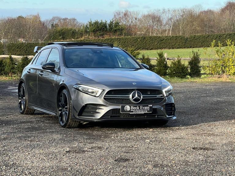 VAT QUALIFYING. AMG AERODYNAMIC PACKAGE! NATIONWIDE DELIVERY AND CLICK AND COLLECT Available. Here At Beck Evans We Are Proud To Introduce This Stunning Mercedes Benz A Class A35 Premium Plus 4Matic Auto, A True Masterpiece Of Engineering and Luxury. With Only One Company Owner From New and Comes With Full Mercedes Benz Main Dealer and Specialist Service History, LOW MILEAGE. This Vehicle is Finished in Mountain Grey Metallic with Full Black Leather Seats, Electric Adjustable Front Seats with Memory And Heating Function, Satellite Navigation, Reversing Camera With Parking Assist Sensors Front and Rear, DAB Radio, Smartphone Integration with Apple Carplay, Bluetooth, Phone Prep, Dual Zone Automatic Climate Control Air Conditioning, Leather Multifunction Steering Wheel, Automatic Lights, Rain Sensors, Electric Folding Wing Mirrors, Active Lane Keeping Assist with Camera, Auto Dimming Rear View Mirror, Memory Package, Rear Armrest, 7 Speed Automatic Transmission, Cruise Control with Speed Limiter, Steel Suspension with Adjustable Damping, Electric Folding Wing Mirrors, Road Sign Recognition System, Black Fabric Headlining, Dynamic LED Headlamps With Automatic High Beam Control Plus, AMG Styling, Ambient Lighting, Keyless Entry with Keyless Go, Park Assist With Cross Traffic Function, Agility Select, Longitudinal Grain Aluminium Interior Trim, Nappa Leather AMG Steering Wheel, Exclusive Package, Parking Package, Mirror Package, AMG Exterior Night Package, 19 Inch AMG Multi Spoke Alloy Wheels, Front Lumbar Support, Seat Comfort Package, Exterior Light and Sight Package, Voice Activated Controls, Isofix Rear Seats, Remote Central Locking, Alarm, From its powerful 2.0-litre engine to its advanced 4Matic all-wheel drive system, every aspect of the Mercedes-Benz A-Class is designed to deliver performance, comfort, and elegance. Whether you're navigating city streets or cruising on the open road, this vehicle is sure to impress.Don't miss your chance to own this exceptional Mercedes-Benz A-Class. Contact us today to schedule a test drive and experience luxury on a whole new level.Additional fees may apply, please note, not all cars are kept on site please call to make appointment and to avoid disappointment. pre delivery check, This vehicle will be sold with the benefit of A Optional 24 MONTH EXTENDED WARRANTY WITH MAIN DEALER LABOUR RATES, charged at an additional 1299. Hpi Checked, Part Exchanges Welcome. Low Rate Finance/PCP Finance Options Available, Over 100 Cars and Up To 50 pictures Available Visit Our Website [Website URL removed] call now Tel: [Phone number removed] USED CAR DEALERS 2022 WINNERS, VAT QUALIFYING, VAT RECLAIMABLE FOR EXPORT AND BUSINESS USE ONLY.