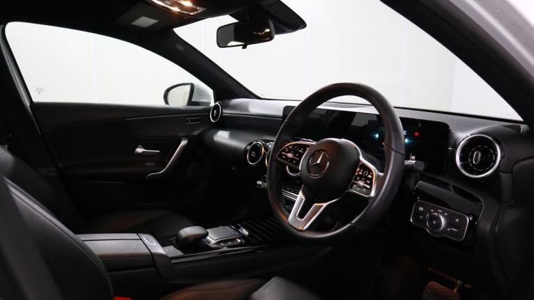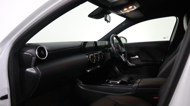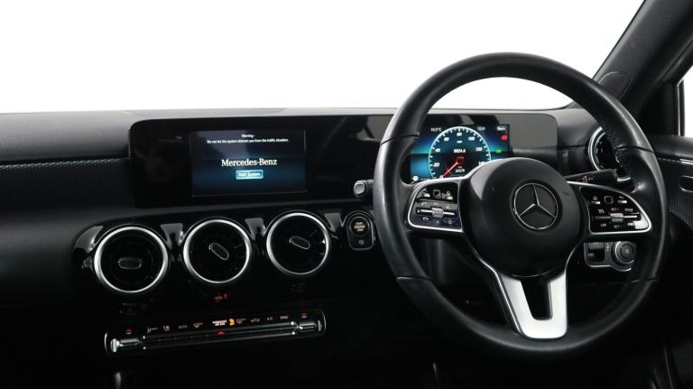 .This 2021 Mercedes Benz A Class A200 Sport is a prime example of refined motoring, boasting a 1.3L Euro 6 petrol engine for efficient performance. As a Sport trim model, it comes equipped with desirable features such as heated front seats for those colder journeys, dual Bluetooth interfaces for seamless connectivity, and a premium 100W Mercedes Benz sound system to enhance your driving experience. The striking LED High Performance Headlamps with integrated LED daytime running lights ensure excellent visibility and add to the vehicle's sophisticated appearance. Experience impressive acceleration with this A Class, reaching 0-62mph in just 8.0 seconds, a testament to its dynamic capabilities. This performance, combined with its generous boot space, makes the A200 Sport a practical yet engaging choice. These highlights demonstrate how this Mercedes Benz A Class offers a superior blend of comfort, technology, and driving pleasure compared to other vehicles in its class..180 degree rear view camera with parking guidelines, 7'' colour screen in instrument panel, 7'' touchscreen media display, Attention assist, Brake pad wear indicator warning light, Car wash mode, Cruise control + speed limiter, Direct steering, Dual bluetooth interfaces, DYNAMIC SELECT with a choice of driving modes (ECO, Comfort, Sport and Individual), ECO start/stop function, Fluid level warning indicator for fuel, oil, coolant and washer fluid, Hard-disk navigation, Hey Mercedes Voice activation, Lamp failure indicator, Lane keeping system, Mercedes me connect including emergency call system, accident recovery, breakdown and maintenance management, Mercedes me remote services, Outside temperature gauge, Owners manual in English, Pre-installation for private car sharing, Preinstallation for Mercedes Benz link, Service indicator (ASSYST), Speed sensitive power steering, Trip computer, Lowered comfort suspension, Rear axle torsion beam, 2 USB ports (type C) in rear stowage compartment and one in front of center console, 6 speakers, DAB Digital radio, MBUX multimedia system with DAB digital radio and touchpad including satellite navigation, Mercedes-Benz sound system - 100W, 4 Electric Front and Rear windows, Adaptive brake lights, Black weather strip, Body colour bumpers, Body colour door handles, Body colour side skirt, Body coloured door mirrors, Chrome beltline trim, Diamond radiator grille with black pins with one louvre in silver + chrome insert, Electric adjustable and heated door