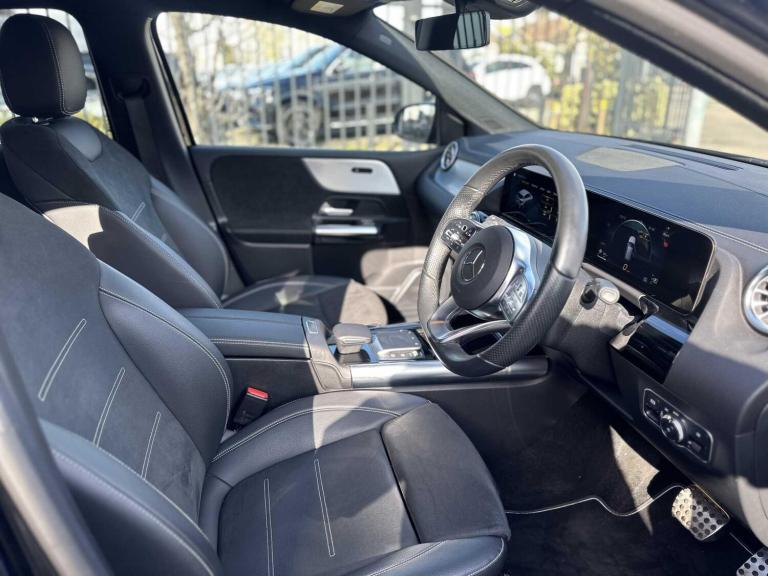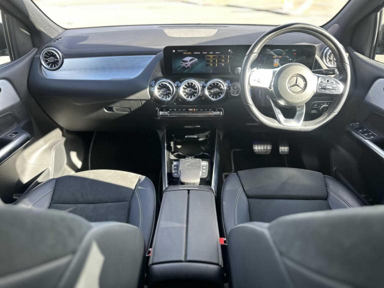 This 2021 Mercedes-Benz B Class B200 AMG Line Edition (Executive) boasts an exceptionally low mileage of just 13,254 miles, making it a standout choice. This Euro 6 compliant 1.3 litre petrol model comes with a full dealership service history, most recently serviced on 21 August 2025 at 12,830 miles, and benefits from being Mercedes-Benz manufacturer approved. Its MOT is valid until October 2026, offering peace of mind. Notable features include body coloured door handles with keyless entry, LED high performance headlamps with integrated daytime running lights, and automatic headlamp activation. Inside, you'll find a 100W Mercedes-Benz sound system and seamless smartphone integration with Apple CarPlay and Android Auto.The B200 AMG Line Edition offers impressive performance, accelerating from 0-62mph in just 8.2 seconds, which is quicker than many vehicles in its class. Its fuel economy is also a strong point, achieving an impressive 46 mpg, demonstrating efficiency for its performance. Furthermore, this model provides generous boot space, making it a practical choice for families or those needing extra room for luggage. These highlights collectively position this Mercedes-Benz B Class as a superior option for those seeking a blend of performance, efficiency, and practicality.