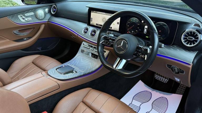 This 2021 Mercedes-Benz E Class E300h AMG Line Night Edition (Premium Plus) has been cherished by just one owner since new. It features a sophisticated 2.0L petrol hybrid engine, meeting Euro 6 emissions standards. Inside, youll find seamless Smartphone Integration with Android Auto and Apple CarPlay, alongside a comprehensive Parking Package complete with a 360-degree camera for effortless manoeuvring. Enjoy the open air with the Panoramic Glass Sunroof, and benefit from the convenience of the Memory Package for your seats. Furthermore, Blind Spot Assist provides an extra layer of safety on your journeys. This E Class variant stands out with its AMG Line Night Edition trim, offering a distinctive look. The inclusion of a large boot space ensures practicality for all your needs, making it more versatile than many comparable vehicles. The combination of its advanced hybrid technology, premium interior features, and comprehensive safety systems positions this Mercedes-Benz as a truly well equipped and desirable option..20in Alloy Wheels - AMG Multi-Spoke-Design - Painted in High-Gloss Black with High-Sheen Finish, ABS - Anti-Lock Braking System, AMG Bodystyling - Front and Rear Apron - Side Skirts, AMG Boot Lid Spoiler in Body Colour, ATTENTION Assist, Active Bonnet - Pedestrian Safety Measure which Detects an Impact and Raises Bonnet, Active Brake ASSIST, Active Park Assist, Adaptive Brake Lights, Adaptive Brake System with HOLD Function and Brake Drying in the Wet, Agility Control Suspension with Selective Damping System and Lowering by 15mm, Airbag - Kneebag for Driver, Airbags - Driver and Front Passenger with Extended Adaptivity for Front Passenger Airbag, Airbags - Sidebag for Driver and Front Passenger - Combined Thorax-Pelvis Bag, Airbags - Windowbags, Alarm System with Immobiliser and Interior Protection, Automatic Child Seat Recognition Sensor, Belt Feeder, Blind Spot Assist, Brake Calipers with Mercedes-Benz Lettering, Brake Wear Warning Display, Burmester Surround Sound System, Central Locking with Interior Switch-Automatic Locking and Crash Sensor with Emergency Opening Function, Central Stowage Compartment with 12V Socket in Centre Console, Central Stowage Compartment with USB Socket for Use with Android Auto and Apple Carplay, Cruise Control with Variable Speed Limiter, DAB Digital Radio Tuner, Diamond Radiator Grille with Integral Mercedes-Benz Star and Single Louvre in High-Gloss Black, Direct-Steer Speed Sensitive Steering, Door Pins in Black, Dynamic Select with a Choice of Driving Modes - Comfort - ECO - Sport - Sport Plus - Individual, ESP - Electronic Stability Programme, Electric Parking Brake, Electric Windows - 4 - With One-Touch Opening and Closing - including Obstruction Sensors, Electronic Key - Chrome Surround, Energizing Comfort Package, Exterior Mirror Housings in High-Gloss Black, First Aid Kit and Warning Triangle, Floor Mats with AMG Lettering, Front Apron in High Gloss Black, Front Centre Armrest with Stowage Compartment, Front Door Sill Panels with Mercedes-Benz Lettering - Illuminated, Glove Compartment - Lockable - Air-Conditioned and Illuminated, Head Restraints for Driver and Front Passenger 4-Way and in Rear 2-Way Adjustability, Headlamps - MULTIBEAM LED Intelligent Light System with Adaptive Highbeam Assist, Heated Front Seats, High-Resolution 12.3in Multimedia Colour Display, ISOFIX Child Seat Attachment Points - Rear Seats, Instrument Cluster - Widescreen 12.3in Cockpit Display, Interior 64-Colour Ambient Lighting, KEYLESS-GO C