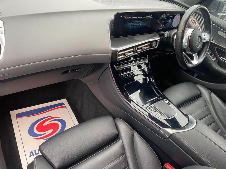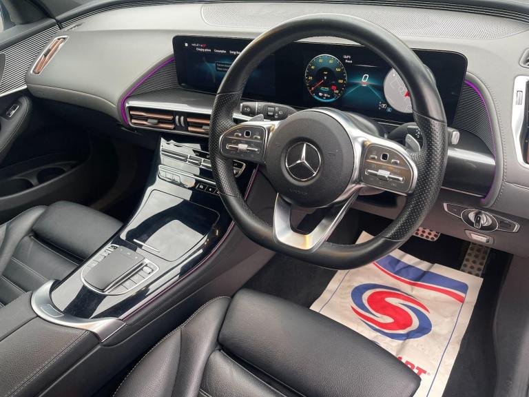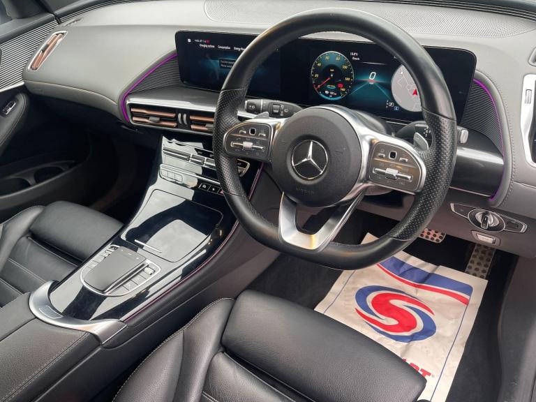 This 2021 Mercedes-Benz EQC 400 AMG Line boasts a full service history, with its last service completed on 03 November 2025, and comes with a clear vehicle history check. This electric, four wheel drive SUV offers a substantial 88 kWh battery, providing a maximum range of 245 miles when new. Charging is convenient, taking approximately 12 hours and 13 minutes at home with a 7kW charger, or a rapid 45 minutes from empty to 80% at a public charging station. This well maintained vehicle has had only one owner and includes a 3 month warranty and 12 months MOT provided on purchase.The EQC 400 AMG Line is equipped with the desirable AMG Line trim, enhancing its sporty appeal. Notable features include MULTIBEAM LED headlights for superior visibility, a KEYLESS-GO Comfort Package for effortless access, and a Blind Spot Assist system to enhance safety. Parking is made simple with the Parking Package, which includes Active Parking Assist and a reversing camera. Inside, you'll appreciate the Mercedes-Benz Sound System delivering 225W of clear audio and a large boot space for all your needs. This model also impresses with its performance, accelerating from 0-62mph in a swift 5.1 seconds, demonstrating a dynamic driving experience that sets it apart.